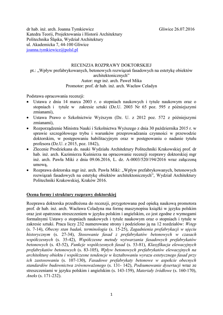 recenzja 1 - Wydział Architektury Politechniki Krakowskiej