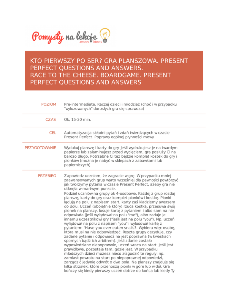jak tworzymy pytania w czasie Present Perfect, ażeby gra nie