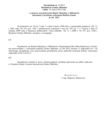 Zarządzenie nr 12/2013 Burmistrza Gminy Miłosław z dnia 21 marca