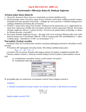 Ćw.6 MS EXCEL 2003 (3) Sortowanie i filtracja danych, funkcje