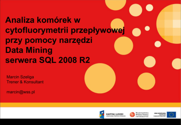 Analiza komórek w cytofluorymetrii przepływowej przy pomocy narzędzi Data Mining serwera SQL 2008 R2 Marcin Szeliga Trener & Konsultant [email protected] MarcinSzeliga:Bio.ToPP() • +15 lat doświadczenia z serwerem SQL • Trener & konsultant • Autor książek i artykułów • SQL Microsoft Most Valuable Professional (od 2006) • Microsoft Specialist (od 2000) Cele • Wykazanie przydatności automatycznej analizy danych z FCM • Segmentacja danych z FCM pod kątem obecności nieprawidłowych subpopulacji komórek • Automatyczna klasyfikacja znalezionych subpopulacji i ich opis statystyczny • Wyszukiwanie komórek nie pasujących do klastrów komórek prawidłowych, z ich oceną ilościową i statystyczną — co ma znaczenie w monitorowaniu leczenia i ocenie tzw. choroby resztkowej • Ocena zmian subpopulacji komórek u tego samego pacjenta w trakcie leczenia Szczegóły • Dane źródłowe z 9-kanałowego cytofluorymetru o 18-bitowej dokładności: • 17 pacjentów z białaczką (2 266 440 komórek) • 17 pacjentów w reemisji (1 248 712 komórek) • Oprócz pacjentów w remisji oraz z ostrą białaczką limfoblastyczną, dane źródłowe pochodziły również od pacjentów na różnym etapie leczenia — u niektórych z nich procent komórek białaczkowych nie przekraczał 3% Bramkowanie Dane treningowe Eliminacja błędów FSCA < 250000 SSCA < 200000 Około 15% Pierwsza segmentacja (FSCA, SSCA, CD19) Około 80% Klastry CD19- Klastry CD19+ i CD19++ (Leukemia 67% Remission 36%) Właściwa segmentacja (Wszystkie zmienne) Właściwa segmentacja (Wszystkie zmienne) Klastry typowych komórek Klastry komórek aberrantnych Klastry komórek mieszanych Wykres Klasyfikacja Komórki typowe Komórki aberrantne Klasyfikacja Dane pacjenta Eliminacja błędów FSCA < 250000 SSCA < 200000 30% Sprawdzenie przynależności do klastrów CD19+ lub CD19++ 65% Komórki CD19- Wykrycie nietypowych komórek 1% Komórki nietypowe Sprawdzenie przynależności do głównych klastrów Klasyfikacja Sprawdzenie przynależności do głównych klastrów Klastry komórek białaczkowych Klastry komórek mieszanych Klastry typowych komórek Klasyfikacja Komórki typowe Komórki białaczkowe Wnioski • Szukanie klastrów tworzonych przez zdrowe komórki pozwoliło osiągnąć wyniki co najmniej tak samo dobre jak dotychczas stosowane metody „ręcznego” bramkowania • Możliwość określenia prawdopodobieństwa przynależności danej komórki do znalezionych wcześniej klastrów • Automatyczna klasyfikacja komórek jako zdrowych lub białaczkowych z ponad 80% dokładnością i prawie 100% wiarygodnością • Możliwość określenie powodu i stopnia nietypowości komórek • Możliwość oceny i identyfikacji zmian subpopulacji komórkowych w trakcie leczenia białaczki Analiza komórek w cytofluorymetrii przepływowej przy pomocy narzędzi Data Mining serwera SQL 2008 R2 Marcin Szeliga Trener & Konsultant [email protected]