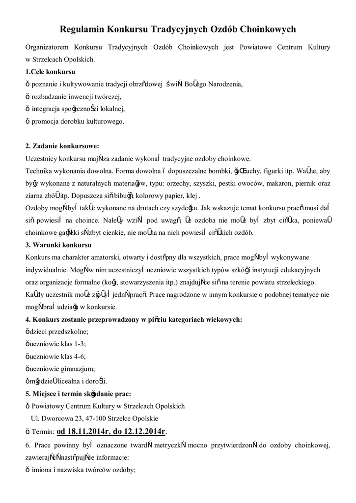 Regulamin Konkursu Tradycyjnych Ozdób Choinkowych