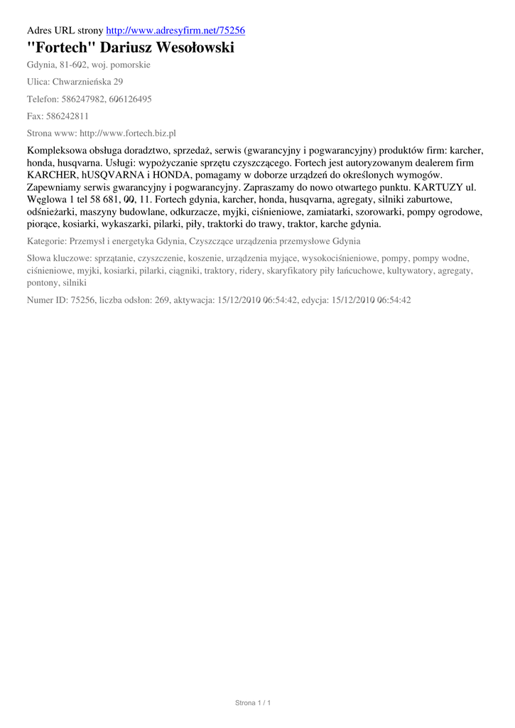 "Fortech" Dariusz Wesolowski, Gdynia, Chwarznienska