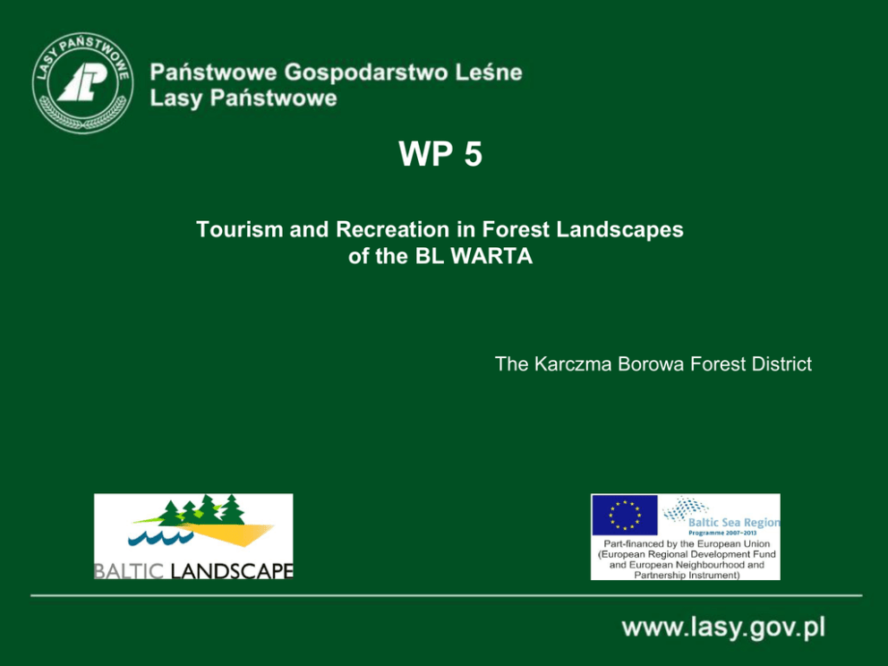 WP 5 Tourism and Recreation in Forest Landscapes of the BL WARTA The Karczma Borowa Forest District Polish forests A great majority of Polish forest are owned by the Polish State Treasury, which means that they are open for each resident of our country. Foresters are responsible for making forests accessible to society in a manner that does not endanger their permanence, sustainability and biodiversity. 2 Problems and konflict areas The forest has to encompass a fair amount of recreational activities such as cycling, walking, forest education with the whole devices, mushroom picking, hunting, fishing, resting on the nature background, nature preservation, that is realized by different ecological or public groups, professional MTB tracks, motor sports etc. and simultaneously create its own natural, internal balance. At present, an extremely high number of institutions, organisations, enterprises and individuals are interested in forest accessibility. 3 Why the Karczma Borowa Forest District? The KB FD administering the forest which border with Leszno – a city with population of over 60 000. Forests located in the vicinity of big agglomerations play a protective, recreational and educational role rather than a productive function. 4 Establishment of partnership as a platform of dialogue The platform of dialogue is already established. Its composition guarantees dialogue between all interested sites, because its members are representatives of communities, business, forestry, sport, environment protection and culture associations. Partnership in BL WP5 is based on Touristic Organization LesznoRegion. 5 6 Lp. Instytucja Osoba do kontaktu e-mail 1. Starostwo Powiatowe Leszno Krystian Maćkowiak [email protected] 2. Miasto Leszno Mateusz Weber [email protected] 3. OT Leszno-Region Grzegorz Rusiecki [email protected] 4. Gmina Krzemieniewo Andrzej Pietrula [email protected] 5. Gmina Osieczna Stanisław Glapiak [email protected] 6. Gmina Rydzyna Grzegorz Jędrzejczak [email protected] 7. Gmina Święciechowa Marek Lorych 8. Gmina Wijewo Ireneusz Zając [email protected] 9. Gmina Lipno Mariusz Homski [email protected] 10. Stowarzyszenie „Życie jest piękne” – organizacja promująca kulturę fizyczną Antoni Neczyński Leszek Walczak [email protected] [email protected] 11. Dworek i stadnina koni Jeziorki Ewa Niestrawska [email protected] 12. Zarząd Okręgowy PZŁ Anna Stachowiak [email protected] 13. Polski Związek Wędkarski Andrzej Łakomy [email protected] [email protected] [email protected] 14. Raptor 4x4 – leszczyński klub off-roadowy Maciej Młynarz [email protected] 15. Koło Łowieckie ORĘŻ Wrocław Witold Szneider [email protected] 16. OTOP Leszno Janusz Maliczak Marcin Tobółka [email protected] [email protected] Social inquiry For the purpose of identifying social expectations as to forestry services making forests accessible to the public, a local WP5 working group prepared a questionnaire that was distributed among Leszno poviat inhabitants. 800 600 400 200 0 7 Example: It is forbidden to enter a forest by a car or motorbike. Nonetheless these types of vehicles are more and more popular in the forest area. Do you thing that foresters should define a special place for off-road? Training for the Forest Service There were organized two study tours to forest districts that face the same problems under touristic economy as the Karczma Borowa FD. The Babki FD is located in the neighborhood of the city of Poznań. The Jarocin FD is located around the town of Jarocin. These meetings were great examples of practical solutions exchange. 8 Problem identification training The training was aiming to combine group knowledge about making landscape accessible to society, to formulate logic statements describing participants experience and to learn to cooperate in problem identification. The training has been led by Przemyslaw Majewski. 9 GIS data base and interactive tourist map As a part of activities carried out by a local working group, in co-operation with IT specialists and a Project partner from the University of Life Sciences in Poznań, guidelines were developed for inventory of tourist elements in the Leszno poviat. An effect of the inventory is an electronic, unified data base used for creating the first in the poviat, professional GIS map portal: an Interactive Tourist Map of the Leszno poviat. The tool available on web sites of local governments and the State Forests offers, among other things, software for mobile devices and promotes, in an innovative and modern manner, tourism and recreation in the area of BL Warta. 10 11 • Dziękuję za uwagę Nadleśnictwo Karczma Borowa Kąkolewo, Leszczyńska 39, 64-100 Leszno 65 529 98 12 12