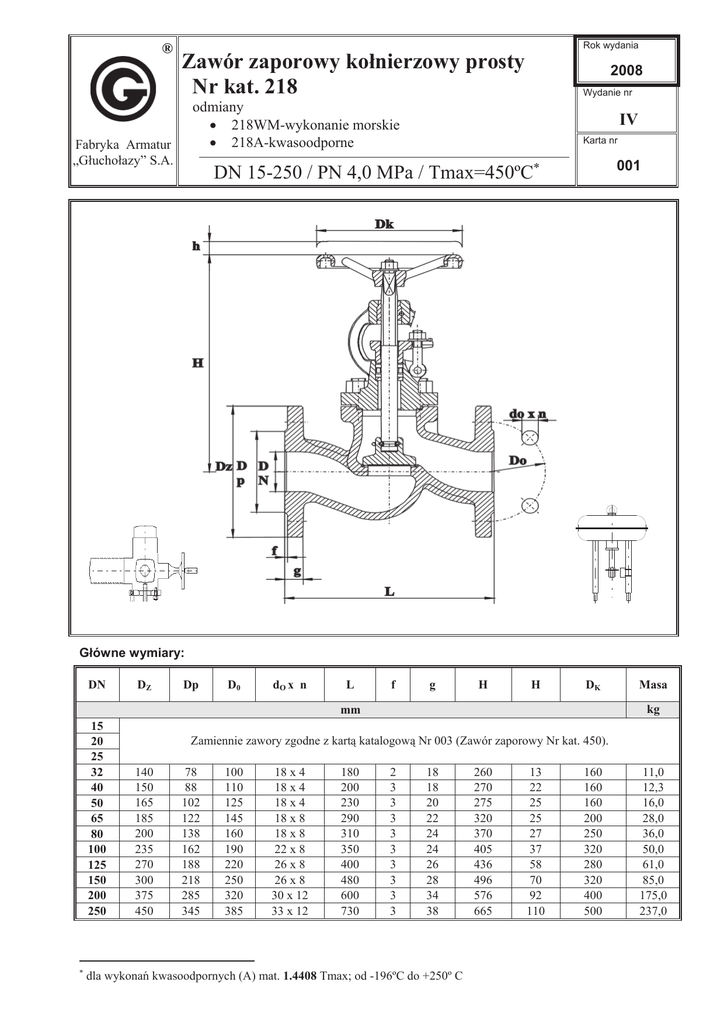 Zawór zaporowy kołnierzowy prosty Nr kat. 218 - Ar-Pol