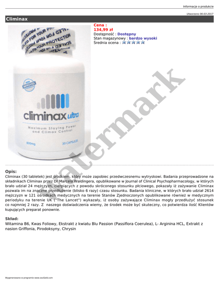 periodyku na terenie UK ("The Lancet") wykazały, iż osoby zażywające Climinax mogły przedłużyć stosunek