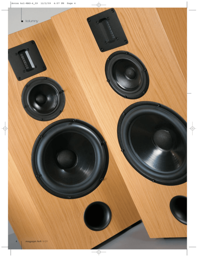 Avcon kol–MAG–4_09 12/2/09 kolumny 4 magazyn hi-fi 4/09 4:57 PM Page 4 Avcon kol–MAG–4_09 12/2/09 4:57 PM Page 5 kolumny Avcon Avalanche ■ƒAlek Rachwaldƒ■ Reference Monitor A valanche to nie pierwszy Avcon na naszych ∏amach, natomiast pierwszy tak bezkompromisowy. Konstrukcyjnie jest to uk∏ad trójdro˝ny z g∏oÊnikiem wst´gowym i du˝ym przetwornikiem niskotonowym w obudowie bas-refleks. Koncepcja (poza zastosowaniem wst´gi) ˝ywo przypomina du˝e pasywne monitory ze z∏otego wieku – w rodzaju Spendorów SP100 – rzadko wyst´pujàce w katalogach wspó∏czesnych, zw∏aszcza m∏odych producentów. Za∏o˝eniem projektanta by∏o, aby kolumny przede wszystkim jak najlepiej brzmia∏y, natomiast wzgl´dy wzorniczo-wn´trzarskie stan´∏y na drugim miejscu. Stàd specyficzne proporcje obudowy, podporzàdkowanej zw∏aszcza dêwiganiu du˝ego przetwornika niskotonowego. Takie skrzynie nie muszà odpowiadaç architektowi wn´trz (chyba ˝e b´dzie to cz∏owiek z du˝à fantazjà), mogà natomiast wzbudziç czujnoÊç poszukiwacza wiernego brzmienia. Obudowa to bardzo starannie wykonana skrzynia w czereÊniowej okleinie, z otworem bas-refleksu z przodu. Zwracam uwag´ na jakoÊç stolarki, poniewa˝ stoi ona niejako w opozycji do prostego kszta∏tu. Jest w tym Êlad brytyjskiego podejÊcia, które owocuje wieloma modelami z pozoru kanciastymi, grubo ciosanymi, jednak przy bli˝szych ogl´dzinach imponujàcymi perfekcjà po∏o˝enia forniru i naturalnà urodà us∏ojenia. Tak w∏aÊnie jest w przypadku monitorów Avalanche. G∏oÊniki to zdecydowanie wysoka pó∏ka. Bas przetwarza 26-cm Seas Prestige z powlekanà papierowà membranà. Ostatnio taki sam g∏oÊnik widzia∏em w kolumnach ART oraz w wielkich skrzyniach LOG Audio. Ârednica to Seas z tej samej linii, tylko 15-centymetrowy, natomiast wysokie tony to coÊ specjalnego. Pracuje tu wst´ga Aurum Cantus, konstrukcyjnie zbli˝ona do nieprodukowanego ju˝, niestety, Ravena R-1. W przeciwieƒstwie do swego s∏awnego kuzyna (znanego m.in. z impedancji schodzàcej poni˝ej 3 omów), Aurum Cantus stanowi stosunkowo ∏atwe obcià˝enie, co powinno pozwoliç na utrzymanie impedancji znamionowej uk∏adu na poziomie zbli˝onym do 8 omów – jak przysta∏o na monitor w brytyjskim stylu. Na wzór niektórych ambitnych i bardzo drogich zestawów (na myÊl przychodzà mi Living Voice Auditorium OBX-R), zwrotnice umieszczono w oddzielnych obudowach. Prowadzàce do nich przewody sà mocowane do trzech par zacisków na tylnej Êcianie kolumny. Terminale to proste gniazda; lepiej wyglàda∏yby tu jakieÊ produkty WBT lub podobne. Obudowa zwrotnic równie˝ nie powala wyrafinowaniem – jest to zwyk∏a skrzynka z sosny, wyposa˝ona w uniwersalne pojedyncze zaciski dla kabli g∏oÊnikowych, biegnàcych od wzmacniacza. Zaskakuje obecnoÊç wieka na zawiasach, umo˝liwiajàcego dost´p do filtrów. Okablowanie wewn´trzne testowanego egzemplarza Avconów poprowadzono czystym srebrem Ar- Avcon Avalanche Reference Monitor Dystrybucja: Avcon Cena: 15000 z∏ (wersja katalogowa, bez podstawek) Dane techniczne: Pasmo przenoszenia: Moc znamionowa: EfektywnoÊç: Impedancja: Wymiary (w/s/g): Masa: 30 Hz – 20 kHz 100 W 88 dB 6Ω 105/35/32 cm (z podstawkami 22 cm) 35 kg/szt. gentum. Jest to wariant opcjonalny. Od Argentum pochodzi równie˝ okablowanie zwrotnic. Te wykonano w oparciu o cewki powietrzne i kondensatory polipropylenowe dobrej jakoÊci, choç nie pochodzàce z firm „butikowych”. Ogólnie, mimo paru drobiazgów, takich jak tanie zaciski, wartoÊç materia∏owà i jakoÊç wykonania nale˝y uznaç za wysokà. Znacznie przewy˝sza ona oczekiwania wywo∏ane cenà, zw∏aszcza w przypadku produktu ma∏ej wytwórni, która nie kupuje podzespo∏ów w cenach hurtowych i nie zamawia obudów masowo. CzegoÊ takiego mo˝na by si´ spodziewaç raczej w zestawach kosztujàcych dwulub trzykrotnie wi´cej. Konstrukcja monitorów budzi wysokie oczekiwania. Sprawdêmy zatem, czy je spe∏nià. Dodam tylko, ˝e w teÊcie wykorzysta∏em niewysokie, dedykowane podstawki Ostoja. Alek Rachwald magazyn hi-fi 4/09 5 Avcon kol–MAG–4_09 12/2/09 4:57 PM Page 6 kolumny Opinia 1 System Odtwarzacz CD: Advance Acoustic MCD-403/Stel Audio 04 Wzmacniacz: SoundArt Jazz, Jeff Rowland Capri/102, Zagra-Kulesza, TRI TRV-88SE, Music Angel 845 G∏oÊniki: B&W 801 Matrix Przewody sygna∏owe: Argentum SCG 6/4E Silver, Velum NF-SX, Zu Audio Przewody g∏oÊnikowe: Argentum 6/4, Velum LS-V Przewody zasilajàce, filtr sieciowy: Zu Mother, IsoTek Sigmas Akcesoria: StandArt STO, StandArt SSP W yglàd zewn´trzny nawiàzujàcy do najlepszych wzorców to nie zmy∏ka. Wielkie monitory zas∏u˝y∏y na miano „Reference”. Avalanche cechuje, po pierwsze, du˝y, swobodny dêwi´k ze spr´˝ystym, niskim basem; 6 magazyn hi-fi 4/09 po drugie zaÊ – przejrzystoÊç, która powoduje, ˝e nie ma dwóch wzmacniaczy, które zagra∏yby na nich tak samo. W teÊcie g∏oÊniki pracowa∏y z pi´cioma czy szeÊcioma piecykami, zarówno lampowymi, jak i tranzystorowymi. Ka˝dy z nich ujawni∏ jak na d∏oni swoje wady i zalety. Jak jednak grajà same Avalanche? Za najlepsze i najbardziej neutralne po∏àczenie uzna∏em par´ Avalanche/SA Jazz i w∏aÊnie jej dotyczy opis brzmienia. Pojawi∏y si´ jednak g∏osy, ˝e kolumny najlepiej brzmia∏y z mocnà lampà (Triode Corporation). Z hybrydà dêwi´k by∏ szybki i bardzo rytmiczny, niewykluczone zatem, ˝e zwo- lennicy bardziej mi´kkiego klimatu wybiorà lamp´. Nie przesàdzam, która opcja jest lepsza. Natchnionym kompromisem móg∏by byç mocny tranzystor w klasie A, coÊ w typie Accuphase’a. Nie mia∏em jednak mo˝liwoÊci sprawdziç takiego zestawienia. Avalanche oferuje wyraêne, bogato brzmiàce wysokie tony. Wst´ga Aurum Cantus jest wolna od szorstkoÊci, oddaje natomiast znakomicie wszelkie drobne wybrzmienia i odg∏osy. Dêwi´ki towarzyszàce muzyce (oddechy, skrzypni´cia