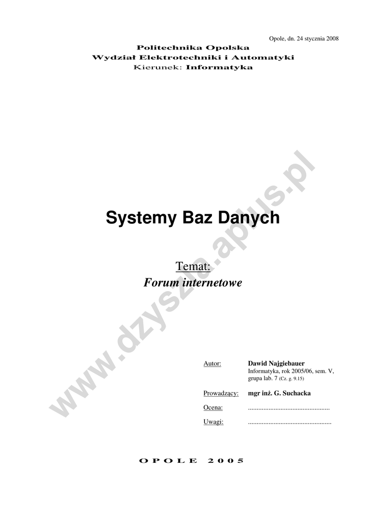 Tabela 2.4. Struktura tabeli przechowującej dane o działach i wątkach. ...................................................................... 6