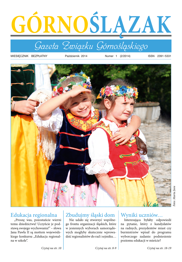 GÓRNOŚLĄZAK Gazeta Związku Górnośląskiego Październik 2014 Numer 1 (2/2014) Edukacja regionalna Zbudujmy śląski dom ISSN 2391‒5331 Foto: Marta Jura MIESIĘCZNIK BEZPŁATNY „Proszę was, pozostańcie wierni temu dziedzictwu! Uczyńcie je podstawą swojego wychowania!” – słowa Jana Pawła II są mottem wojewódzkiego konkursu „Edukacja regionalna w szkole”. Czytaj na str. 10 Nie udało się stworzyć wspólnego frontu organizacji śląskich, które w jesiennych wyborach samorządowych mogłyby skutecznie wprowadzić regionalistów do rad i sejmiku… Czytaj na str. 8-9 Wyniki uczniów… Interesująca byłaby odpowiedź na pytanie, który z kandydatów na radnych, prezydentów miast czy burmistrzów wpisał do programu wyborczego zadanie: podniesienie poziomu edukacji w mieście? Czytaj na str. 18-19 Rodzina Górnośląska 2014 na Górze Świętej Anny Fot. Marta Jura GÓRNOŚLĄZAK 3 www.zg.org.pl Bezcenny tandem: Rodzice – Nauczyciele W życiu każdego człowieka jest kilka filarów, na których opiera on codzienne życie i które towarzyszą mu począwszy od urodzenia do dnia odejścia w tzw. lepszy świat. Te filary to między innymi rodzice, kształtujący więzi rodzinne, miłość, szacunek i wychowanie w duchu zrozumienia, to etos pracy, kształtującej charakter i umiejętności oraz zapewniającej byt, to wiara, głęboko tkwiąca w sercu mieszkańców naszego regionu, ale to również nauczyciel i wychowawca, od którego zaczyna się nasza przygoda z prawdziwą nauką. Nie sposób przecenić roli nauczyciela, pedagoga, który z pewnością w społeczności szkolnej tworzy nasz drugi dom, nasze miejsce edukacji i nauki życia oraz pracy w zespole. Dom rodzinny oraz środowisko szkoły stanowią główną oś kształtowania osobowości, wiedzy i wychowania człowieka. Powiedzenie czego się Jaś nie nauczył, Jan nie będzie umiał jest ponadczasowe, a misją pedagogów jest wyposażenie Jasia w niezbędną do funkcjonowania wiedzę. To bardzo trudne i odpowiedzialne zadanie, często niewdzięczne i stresujące, jednakże jakże satysfakcjonujące, gdy efektem pracy pedagoga jest wykształcony, potrafiący współdziałać w grupie i wychowany w duchu pracy i miłości Jan. To Wam, Drodzy Nauczyciele, zawdzięczamy to, że piszemy, czytamy, liczymy, rozumujemy. W Dniu Edukacji Narodowej myślimy o Was szczególnie ciepło i dziękujemy za trud, jaki wkładacie w pracę, niosąc pod strzechy kaganek oświaty. Razem z rodzicami stanowicie bezcenny tandem, od którego zależy nie tylko nasza wiedza, ale i umiejętność świadomego uczestniczenia w życiu społeczeństwa. Podziękowania i gratulacje należą się absolutnie wszystkim pedagogom, lecz chciałbym szczególne podziękowania złożyć nauczycielom regionalistom. Edukacja regionalna jest niezwykle ważna, zarówno w obszarze wiedzy o regionie, jak i kształtowania tożsamości śląskiej, tak ważnej dla mieszkańców naszego regionu. Ta idea jest dla Związku Górnośląskiego niezwykle istotna. ■ Szczęść Boże! Prezes Związku Górnośląskiego Marek Sobczyk Z okazji Dnia Edukacji Narodowej całej społeczności szkolnej życzę wszelkiej pomyślności: Nauczycielom – poszukujących wiedzy uczniów, wielu źródeł inspiracji, pogody ducha i zapału w pracy; Uczniom – nauczycieli-autorytetów, przewodników po świecie; Wszystkim pracownikom oświaty – satysfakcji z wykonywanej pracy i wielu powodów do radości. Stanisław Faber Śląski Kurator Oświaty W numerze między innymi… Europoseł Plura o otwarciu Domu Śląskiego (i nie tylko) | s. 8-9 Temat numeru: Edukacja – także regionalna. Rozmowa ze Śląskim Kuratorem Oświaty | s. 10-16 Otwarcie Domu Śląskiego | s. 17 Niepokojące dane o wynikach uczniów woj. śląskiego | s. 18-19 Pasjonująca historia Ewy von Tiele-Winckler | s. 23-24 Dwugłos wyborczy: O wizję Katowic pytamy Marcina Krupę i Jerzego Ziętka | s. 25-27 Trzy pytania do Marszałka Mirosława Sekuły | s. 29-30 oraz rubryki stałe… Z życia Związku | s. 4-5 Carbon Music | s. 6 Felietony | s. 7 i 30 Rajza po Górnym Śląsku | s. 8 Kultura | s. 20-22 Wydawca: Związek Górnośląski www.zg.org.pl Redaguje zespół: Grzegorz Franki (redaktor naczelny), Marta Jura, Krzysztof E. Kraus (sekretarz redakcji), Rafał Kula, Kamil Nowak, Łucja Staniczkowa, Przemysław Stanios, Łukasz Szostok, Anita Witek. Adres redakcji: 40‒058 Katowice, ul. Pawła Stalmacha 17, tel. 32 251 27 25 • [email protected] Dział reklamy: tel. 608 080 281 • [email protected] DTP: Kazimierz Leja • [email protected] Druk: Drukarnia im. Karola Miarki PW TOLEK Sp. z o.o. 43‒190 Mikołów, ul. Żwirki i Wigury 1 tel. 32 326 20 90 • www.tolek.com.pl ISSN 2391‒5331 4 GÓRNOŚLĄZAK www.zg.org.pl Z życia Związku Dom Śląski otwarty! XIII Spotkanie września 2014 roku przejdzie do historii Rodziny Górnośląskiej Związku Górnośląskiego jako dzień, w którym otwarty został Dom Śląski. Uroczystość miała na Górze św. Anny bardzo podniosły charakter. Na Stalmacha 17 zebrało się 100 gości, na czele z Metropolitą Górnośląskim w Roku Jubileuszowym ponad abp. Wiktorem Skworcem i Marszałkiem Województwa 15 XIII edycja spotkania Rodziny Górnośląskiej na Górze Świętej Anny połączona z obchodami 25-lecia istnienia Związku Górnośląskiego, która odbyła się 21 września, pokazała prawie 1000 uczestnikom, którzy przybyli z całego regionu, jak silną jesteśmy społecznością. Pozwala to nam śmiało i bez obaw patrzeć w przyszłość naszej organizacji. Śląskiego Mirosławem Sekułą. Dom Śląski to najnowszy projekt Związku Górnośląskiego. Jego pomysłodawczynią i inicjatorką jest dr Łucja Staniczkowa – wiceprezes Związku Górnośląskiego, regionalistka i ekspert edukacji regionalnej. O bchody rozpoczęły się w asyście 14 pocztów sztandarowych pod Pomnikiem Czynu Powstańczego od odśpiewania Roty. Prezes Związku Górnośląskiego 