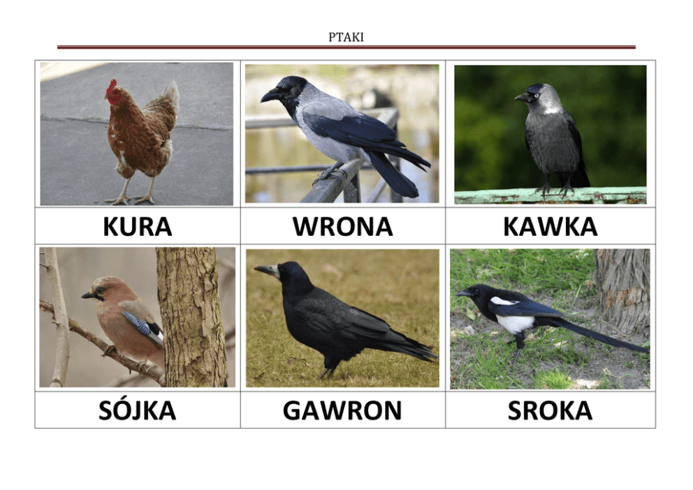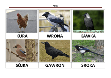 PTAKI KURA WRONA KAWKA SÓJKA GAWRON SROKA PTAKI SIKORKA BOGATKA WRÓBEL GOŁĄB SIKORKA MODRA MEWA SZPAK PTAKI KOS ŁABĘDŹ BOCIAN PAW CZAPLA KACZKA KRZYŻÓWKA