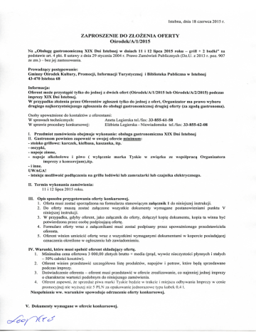 ZAPROSZENIE DO ZLOZENIA OFERTY Osrodek/A/1/2015