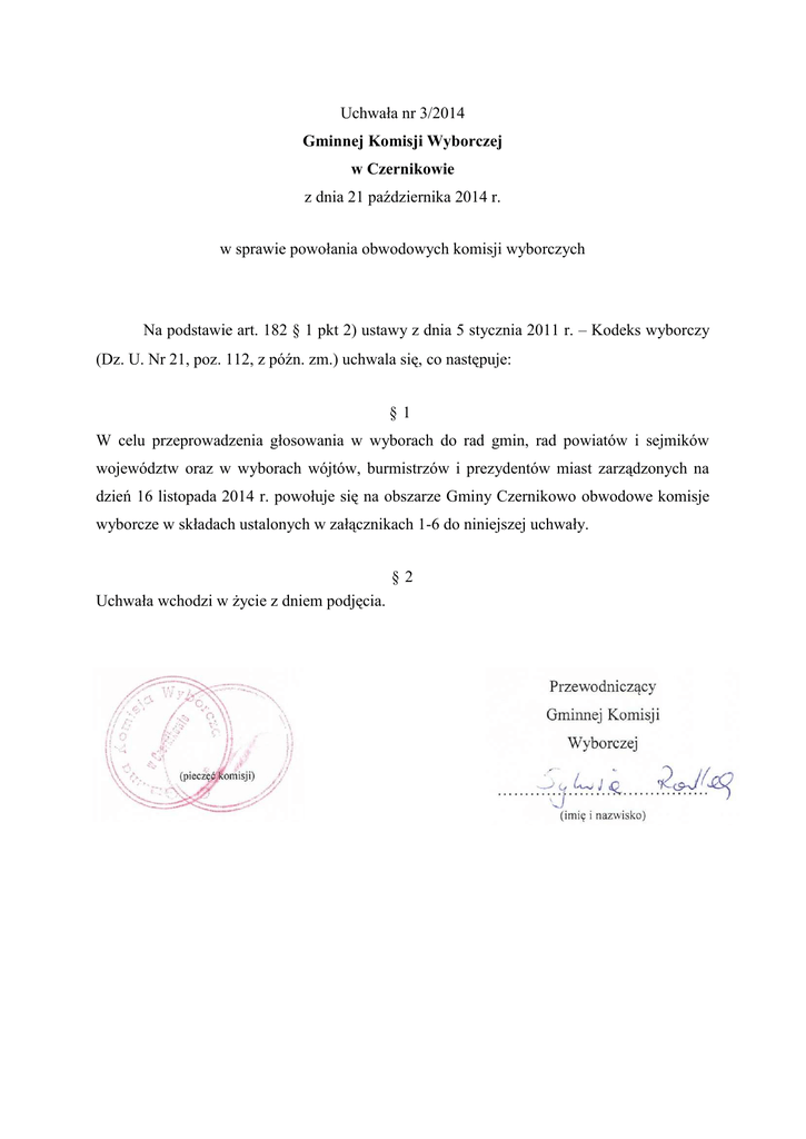 Uchwała Gminnej Komisji Wyborczej w Czernikowie z dnia 21