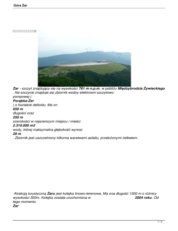 . Z reguły Żar jest znany z pierwszej w Polsce hydroelektrowni szczytowej. System ten polega