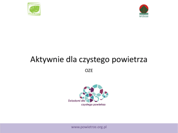 Aktywnie dla czystego powietrza OZE www.powietrze.org.pl Nowelizacja ustawy o OZE 1.07.2016 r – wejście w życie przepisów, które dotyczą uruchomienia systemu aukcyjnego oraz mechanizmów wspierających wytwarzanie energii elektrycznej w mikroinstalacjach. www.powietrze.org.pl Główne zmiany System aukcyjny w miejsce zielonych certyfikatów; Preferowanie stabilnych źródeł energii odnawialnej; Klastry energetyczne; Wytwarzanie energii przez prosumenta jedynie na własne potrzeby. www.powietrze.org.pl Nowa definicja prosumenta Art. 2 pkt 27a „Odbiorca końcowy dokonujący zakupu energii elektrycznej na podstawie umowy kompleksowej, wytwarzający energię elektryczną wyłącznie z odnawialnych źródeł energii w mikroinstalacji w celu jej zużycia na potrzeby własne, niezwiązane z wykonywaną działalnością gospodarczą regulowaną ustawą z dnia 2 lipca 2004 r. o swobodzie działalności gospodarczej.” www.powietrze.org.pl Opust w miejsce taryf gwarantowanych Nowy mechanizm pozwala pobrać prosumentowi darmową energię z sieci, w zamian za wprowadzany do niej prąd z mikroinstalacji. Art.4 ust. 1a „Sprzedawca, o którym mowa w art.40 ust. 1 dokonuje rozliczenia ilości energii elektrycznej wprowadzonej przez prosumenta do sieci elektroenergetycznej wobec ilości energii elektrycznej pobranej z tej sieci w stosunku ilościowym 1 do 0,7 z wyjątkiem mikroinstalacji o łącznej mocy nie większej niż 1o kW, dla których ten stosunek wynosi 1 do 0,8.” www.powietrze.org.pl Obowiązek zakupu energii elektrycznej Niewykorzystanej energii elektrycznej wytworzonej przez wytwórcę, innego niż prosument, w mikroinstalacji z odnawialnych źródeł energii, Oferowanej energii elektrycznej z odnawialnych źródeł energii wytworzonej w: 1. Instalacji odnawialnego źródła energii, innej niż mikroinstalacja, o łącznej mocy mniejszej niż 500 kW; 2. Instalacji odnawialnego źródła energii wykorzystującej wyłącznie biogaz rolniczy do wytworzenia energii elektrycznej; Energii elektrycznej z odnawialnych źródeł energii o łącznej mocy mniejszej niż 500 kW, od wytwórcy tej energii, który wygrał aukcję po stałej cenie ustalonej w aukcji nie później niż w terminie do 30 czerwca 2021 r.: www.powietrze.org.pl Klastry energii Art. 2 pkt. 15a - Klaster energii to cywilnoprawne porozumienie, w skład którego mogą wchodzić osoby fizyczne, osoby prawne, jednostki naukowe, instytuty badawcze lub jednostki samorządu terytorialnego, dotyczące wytwarzania, dystrybucji lub obrotu energią z OZE lub innych źródeł lub paliw, w ramach sieci dystrybucyjnej o napięciu niższym niż 110 kV, na obszarze działania nieprzekraczającym granic jednego powiatu lub 5 gmin. Klaster reprezentuje koordynator, którym jest powołana w tym celu: spółdzielnia, fundacja lub dowolny członek klastra. Celem stworzenia klastrów jest promowanie społecznego i przedsiębiorczego podejścia w grupach ludności zamieszkujących tereny wiejskie. Poprzez połączenie działań z kilku obszarów gospodarki mogą one zapewnić lokalną samowystarczalność energetyczną. www.powietrze.org.pl Biomasa lokalna Dla efektywniejszego wykorzystania lokalnie dostępnych zasobów biomasy zawarto definicję biomasy lokalnej – biomasa pozyskiwana w promieniu obszaru nie większego niż 300 km od jednostki wytwórczej. www.powietrze.org.pl Skutki System rozliczeń z prosumentem nie jest opłacalny; Opłacalność inwestycji w przypadku prosumenta biznesowego; Zwiększenie wsparcia dla współspalania i biogazowni; Pogorszenie sytuacji energetyki wiatrowej (ustawa odległościowa). www.powietrze.org.pl Korzyści z OZE Gmina Wolin- roczne wpływy do budżetu: ok. 2,4 mln zł Ze środków, które dzięki elektrowniom wiatrowym wpływają do budżetu zrealizowano: • Budowa oczyszczalni ścieków w Wiejkowie • Doprowadzenie wody do miejscowości: Jagniątkowo i Wiejkowo, • Remont drogi powiatowej. Gmina Margonin - roczne wpływy do budżetu: ok. 3,5 mln zł (ok. 25% budżetu gminy) • Inwestycje w infrastrukturę: przebudowa rynku, budowa hali widowiskowej, dokończenie budowy kanalizacji oraz elektrycznego wyciągu do nart wodnych na Jez. Margońskim www.powietrze.org.pl
