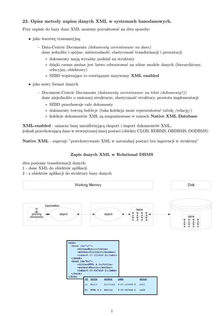 23. Opisz metody zapisu danych XML w systemach bazodanowych.
