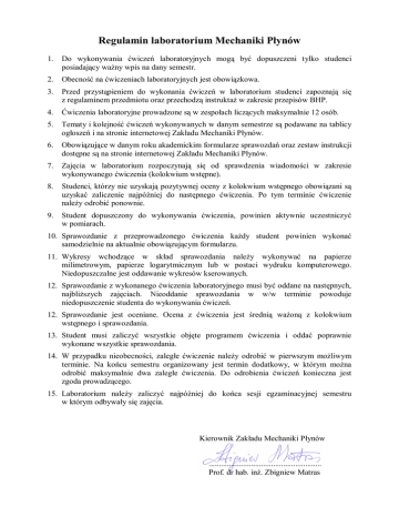 Regulamin laboratorium Mechaniki Płynów