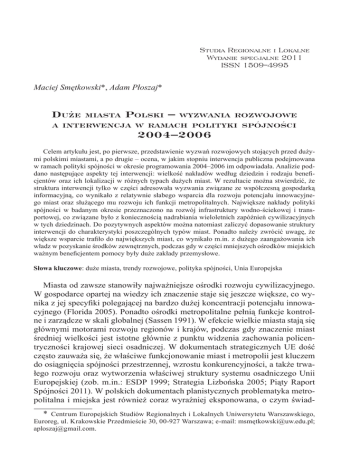 Maciej Smętkowski, Adam Płoszaj Studia Regionalne i Lokalne Wydanie specjalne 2011 ISSN 1509–4995 Maciej Smętkowski*, Adam Płoszaj* Duże miasta Polski – wyzwania rozwojowe … a interwencja w ramach polityki spójności 2004–2006 Celem artykułu jest, po pierwsze, przedstawienie wyzwań rozwojowych stojących przed dużymi polskimi miastami, a po drugie – ocena, w jakim stopniu interwencja publiczna podejmowana w ramach polityki spójności w okresie programowania 2004–2006 im odpowiadała. Analizie poddano następujące aspekty tej interwencji: wielkość nakładów według dziedzin i rodzaju beneficjentów oraz ich lokalizacji w różnych typach dużych miast. W rezultacie można stwierdzić, że struktura interwencji tylko w części adresowała wyzwania związane ze współczesną gospodarką informacyjną, co wynikało z relatywnie słabego wsparcia dla rozwoju potencjału innowacyjnego miast oraz służącego mu rozwoju ich funkcji metropolitalnych. Największe nakłady polityki spójności w badanym okresie przeznaczono na rozwój infrastruktury wodno-ściekowej i transportowej, co związane było z koniecznością nadrabiania wieloletnich zapóźnień cywilizacyjnych w tych dziedzinach. Do pozytywnych aspektów można natomiast zaliczyć dopasowanie struktury interwencji do charakterystyki poszczególnych typów miast. Ponadto należy zwrócić uwagę, że większe wsparcie trafiło do największych miast, co wynikało m.in. z dużego zaangażowania ich władz w pozyskanie środków zewnętrznych, podczas gdy w części mniejszych ośrodków miejskich ważnym beneficjentem pomocy były duże zakłady przemysłowe. Słowa kluczowe: duże miasta, trendy rozwojowe, polityka spójności, Unia Europejska Miasta od zawsze stanowiły najważniejsze ośrodki rozwoju cywilizacyjnego. W gospodarce opartej na wiedzy ich znaczenie staje się jeszcze większe, co wynika z jej specyfiki polegającej na bardzo dużej koncentracji potencjału innowacyjnego (Florida 2005). Ponadto ośrodki metropolitalne pełnią funkcje kontrolne i zarządcze w skali globalnej (Sassen 1991). W efekcie wielkie miasta stają się głównymi motorami rozwoju regionów i krajów, podczas gdy znaczenie miast średniej wielkości jest istotne głównie z punktu widzenia zachowania policentryczności krajowej sieci osadniczej. W dokumentach strategicznych UE dość często zauważa się, że właściwe funkcjonowanie miast i metropolii jest kluczem do osiągnięcia spójności przestrzennej, wzrostu konkurencyjności, a także trwałego rozwoju oraz wytworzenia właściwej struktury systemu osadniczego Unii Europejskiej (zob. m.in.: ESDP 1999; Strategia Lizbońska 2005; Piąty Raport Spójności 2011). W polskich dokumentach planistycznych problematyka metropolitalna i miejska jest również coraz wyraźniej eksponowana, o czym świad* Centrum Europejskich Studiów Regionalnych i Lokalnych Uniwersytetu Warszawskiego, Euroreg, ul. Krakowskie Przedmieście 30, 00-927 Warszawa; e-mail: msmę[email protected]; [email protected]. Duże miasta Polski – wyzwania rozwojowe… 9 czy Krajowa Strategia Rozwoju Regionalnego (2010) oraz Ekspercki Projekt Koncepcji Przestrzennego Zagospodarowania Kraju (2011). Funkcjonowanie miast jest uwarunkowane szeregiem czynników wykraczających daleko poza skalę lokalną. Jak pokazuje ryc. 1, współcześnie najważniejszymi uwarunkowaniami rozwoju wszystkich układów terytorialnych stały się trzy wzajemnie powiązane czynniki: globalizacja, konkurencja i innowacja (Gorzelak, Jałowiecki 2000). Globalizacja oznacza większą mobilność czynników produkcji (kapitału i pracy) oraz większą integrację światową przez wzrost handlu i zagranicznych inwestycji (Albinowski 2004). Jest ona możliwa dzięki innowacjom i zarazem intensyfikuje samą działalność innowacyjną. Z kolei w odniesieniu do konkurencyjności, globalizacja powoduje jej zaostrzenie, także względem układów lokalnych, które nie konkurują już tylko ze swoimi sąsiadami w układzie regionalnym czy krajowym, ale również z innymi częściami świata. Przejawia się to międzynarodową konkurencją o inwestycje zagraniczne, gdyż wielkie koncerny transnarodowe często rozważają kilka lokalizacji w krajach położonych na różnych kontynentach (Gorzelak 2003). W zglobalizowanym świecie przewaga konkurencyjna budowana jest za pomocą innowacji, co w uproszczeniu wyraża się sloganem „innowacja albo śmierć” (por. Jagersma 2002). Stała się ona bowiem ucieleśnieniem sukcesu firm, regionów i państw, jest też głównym elementem wspomnianej już gospodarki opartej na wiedzy (GOW), czyli współczesnego paradygmatu rozwoju gospodarczego krajów wysokorozwiniętych, w którym wiedza – tworzona, zdobywana, przekazywana i efektywnie wykorzystywana przez przedsiębiorstwa, organizacje, poszczególne jednostki oraz społeczności – to podstawowy czynnik wzrostu (Kukliński 2001). Cechami GOW są: wysoka innowacyjność, wysoki poziom wykształcenia społeczeństwa, rozwinięta infrastruktura telekomunikacyjna, duże wydatki na edukację i badania naukowe (por. np. Zienkowski 2003). GLOBALIZACJA ▪ ▪ ▪ ▪ INNOWACJA komputerowy kapitał deregulacja światowego rynku korporacje transnarodowe (gateways) możliwa dzięki innowacjom (sieci informatyczne) ▪ ▪ ▪ ▪ tworzy dla siebie popyt służy do powstania nowych innowacji umożliwia globalizację (sieci informatyczne) jest płaszczyzną konkurencji KONKURENCJA ▪ ▪ ▪ ▪ ▪ zaostrza się staje się globalna (nowi aktorzy) objęła regiony/miasta wygrywają producenci innowacji utrwala segmentację Ryc. 1. Triada współczesnego modelu rozwoju Źródło: Gorzelak 2003, s. 44. 10 Maciej Smętkowski, Adam Płoszaj W kontekście rozwoju dużych miast szczególne znaczenie ma zjawisko metropolizacji, która jest jednym z najważniejszych wyznaczników współczesnego modelu rozwoju. We współczesnej gospodarce głównymi centrami