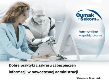 Dobre praktyki z zakresu zabezpieczeń informacji w nowoczesnej administracji Sławomir Brzeziński Agenda Qumak-Sekom S.A. E-administracja Ochrona danych m. in. osobowych – prawo Zagrożenia Wskaźniki jakościowe Dostępne technologie Wytyczne planowania DR Qumak-Sekom SA Jeden z 3 największych integratorów IT na polskim rynku (nr 2 według raport PMR, nr 3 wg raportu TOP200 IDG) Od 25 lat na rynku Ok 500 pracowników realizujących projekty w całej Polsce a także za granicą Qumak-Sekom S.A. wiarygodny i bezpieczny partner Qumak-Sekom posiada świadectwo bezpieczeństwa przemysłowego I stopnia - potwierdzające pełną zdolność do ochrony informacji Qumak-Sekom – pełny wymiar kompetencji przyjazne otoczenie Twojego biznesu Technologie Inteligentnego Budynku strategia Twojego sukcesu Aplikacje Biznesowe bezpieczny rozwój Twojej firmy Integracja Systemowa stabilny rytm Twoich działań Wsparcie i Serwis Technologiczny > Utrzymanie i obsługa Data Center > Data Center > Contact Center > Bezpieczeństwo IT > Elektroenergetyka > Rozwiązania CRM > Infrastruktura IT > Integracja systemowa > Rozwiązania ERP > Sieci teleinformatyczne > Zarządzanie procesami serwisowymi > Systemy bezpieczeństwa i automatyki > IT Service Management > Komunikacja multimedialna > Serwis infrastruktury IT > Wyposażenie AV oraz > Wsparcie techniczne dla systemów > BMS > Enterprise Asset Management > Business Intelligence nagłośnienie profesjonalne E - (nowoczesna) administracja E-administracja, elektroniczna administracja – wykorzystanie technologii telekomunikacyjnych w administracji publicznej - wszystko co pozwala zastąpić obiegiem dokumentów w postaci elektronicznej tradycyjny obieg drukowanych dokumentów Usługi Publiczne Karta Miejska Portale informacyjne Platforma CEIDG Platforma ePUAP •eVoting •eDeklaracje E-administracja - złożone systemy informatyczne oraz krytyczne dane Bezpieczeństwo informacji – przepisy prawne Wymagania prawne: Ustawa z dnia 29 sierpnia 1997r. O ochronie danych osobowych (Dz.U.Nr.133,poz.883) Ustawa z dnia 5 sierpnia 2010r. O ochronie informacji niejawnych (Dz.U.z 2010r. Nr.182,poz.1228 z późn.zm.) Ustawa z dnia 20 września 1994r. O rachunkowości (Dz.U.Nr.121,poz.591) Ustawa z dnia 14 lipca 1983r. O narodowym zasobie archiwalnym i Archiwach Ustawa z dnia 9 stycznia 1997 r. – Kodeks Celny (Dz.U.Nr.23,poz.117) Konsekwencje: Kto ... będąc obowiązany do ochrony danych osobowych udostępnia je lub umożliwia dostęp do nich osobom nieupoważnionym, podlega grzywnie, karze ograniczenia wolności albo pozbawienia wolności do lat 2 (Ustawa Art. 51 ust. 1) Jeżeli sprawca działa nieumyślnie podlega grzywnie, karze ograniczenia wolności albo pozbawienia wolności do lat 2 (Ustawa Art. 51 ust. 2) Kto administrując danymi narusza choćby nieumyślnie obowiązek zabezpieczenia ich przed zabraniem przez osobę nieuprawnioną, uszkodzeniem lub zniszczeniem, podlega grzywnie, karze ograniczenia wolności albo pozbawienia wolności do roku. (art. 52 Ustawy) Wymagania: Dostępności systemów eUrzędów Konsekwencje: Zaufanie opinii publicznej Zagrożenia i ich zasięg Awaria energetyczna Trzęsienie ziemi Tajfun Powódź Burza, burza śnieżna Pożar Infrastruktura budowlana Terroryzm/Sabotaż Atak hackera/wirusa Błąd operatora Awaria hardware’u Oprogramowanie Oprogramowanie Systemy Budynek Kompleks budynków Region 8 Wskaźniki jakościowe TCO (Total Cost Ownership): Całkowite koszty utrzymania RTO (Recovery Time Objective): Jak szybko po awarii systemu będzie dostępna dana aplikacja? ROI (Return Of Investment): Zwrot z inwestycji RPO (Recovery Point Objective): Jak dużo danych zostanie utraconych? Application Downtime Ostatnia dobra kopia RPO Aplikacja jest znów dostepna RTO Przywrócenie Wczoraj 24 hrs Odtworzenie Now Analiza Zmiany które zostaną utracone. Czas W pogoni za 9-tkami, czyli „Kto potrzebuje zapasowego centrum danych?” Średni przestój % uptime 99.9999 30 seconds 99.999 5 minutes 99.99 52 minutes 99.9 8.75 hours 99.5 43.7 hours 99.0 87.6 hours 98.0 180+ hours 95.0 450+ hours Oszczędności 9-tek ciąg dalszy, czyli „Co powinno znaleźć się w DC ?” % 99.9999 99.999 Asynchronous Replication 99.99 WAN Clustering LAN Clustering Synchronous Replication Checkpoint Recovery 99.9 Block Level Incremental Backups 99.5 99.0 98.0 Hot Backups Cold Backups 95.0 Koszty Dostępne technologie - Backup Backup = podstawowe zabezpieczenie Cold Backup Hot Backup Split-mirror backup, ZDB RealTime Protections SAN Backup (Client, SAN Media Server) Szyfrowanie danych Dostęp do systemu backup Snapshot Client Clients & SAN Clients RealTime Protections RealTime Client & Data base Agents Enterprise Client & Data base Agents Primary Snapshots Client SAN Client Media Servers Disk Staging Basic Tape RealTime Server Basic Tape Clustered Media Servers SAN Tape 150-500 MB/sec Disk Staging Clustered Media Servers Disk Staging Dysk lub taśma Hard lub software snapshot Aut, brak obciążenia klienta Continuous backup Pełna integracja Obciążenie backupem klienta Koszty rozwiązania Bez strat danych pomiędzy snap Dostępne technologie - Backup Deduplikacja Optymalizacja przestrzeni składowanych danych Możliwość realizacji repozytorium DR Media Server GOOD Transfer 1TB 126 Minutes Target Dedupe BETTER Target Deduplication Transfer 1TB Appliance 126 Minutes Transfer 0.1TB 12 Minutes Target Deduplication Appliance Storage OST Off Host Storage Up to 192TB Transfer 1TB 126 Minutes Transfer 0.1TB 12 Minutes 100% Data in Motion Media Server Dedupe 10% Dedupe Data in Motion BEST Client Dedupe Transfer 0.1TB 12 Minutes Transfer 0.1TB 12 Minutes Local Storage Up to 32TB Lower Resource Consumption Replikacja danych PDC DRC 99,99%-99,999% Synchroniczna vs Asynchroniczna Synchroniczna = 100% kopia, wymaga szerokiego pasma, obniża wydajność systemu produkcyjnego. Asynchroniczna = wierność kopii zależna od szerokości pasma, w razie awarii dane nie są w 
