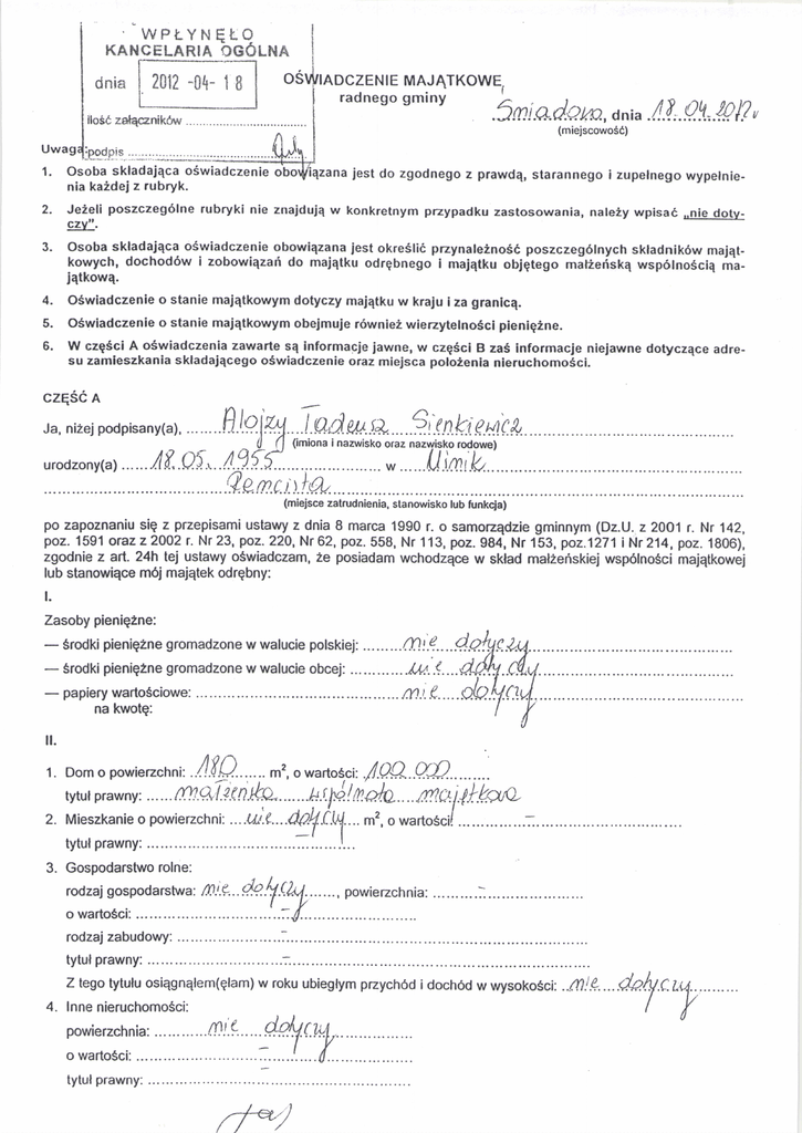 oświadczenie majątkowe za 2011 rok