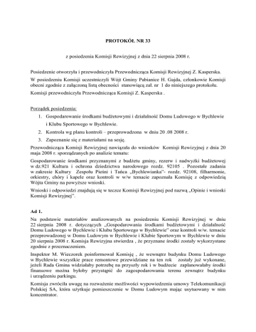 PROTOKÓŁ NR 33 z posiedzenia Komisji Rewizyjnej z dnia 22