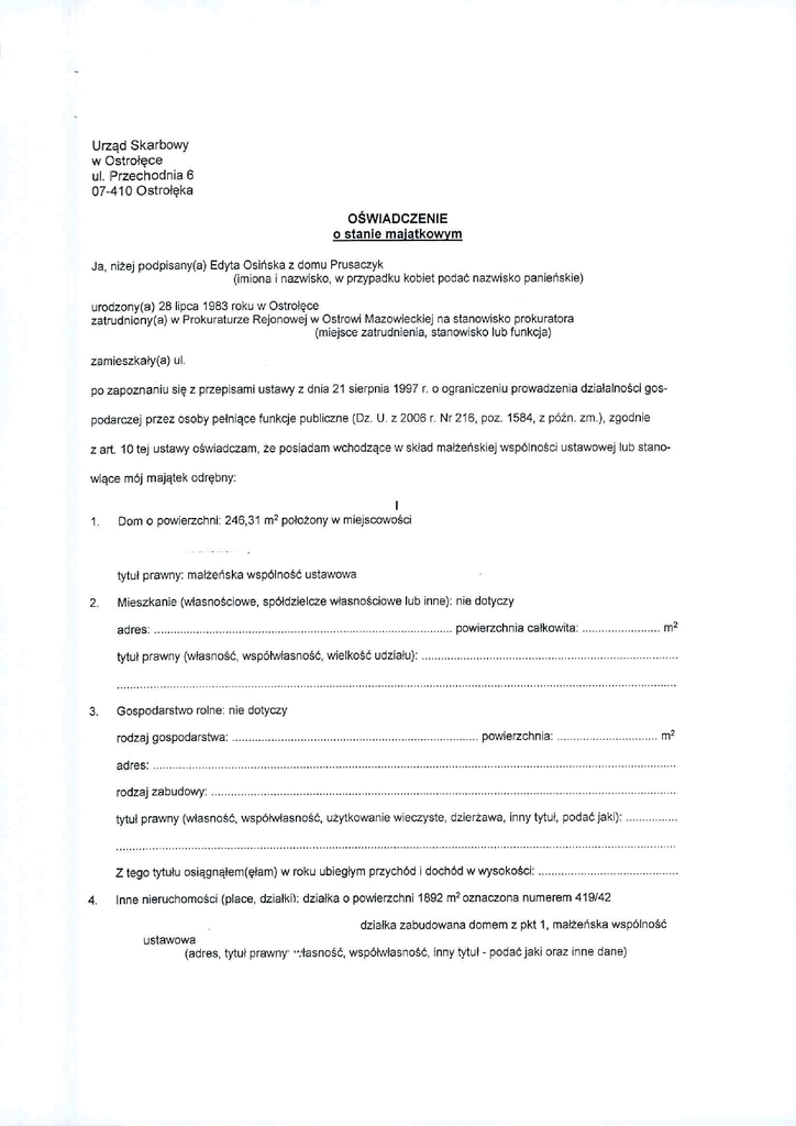 Ja, niżej podpisany(a) Edyta Osiń ska z domu Prusaczyk