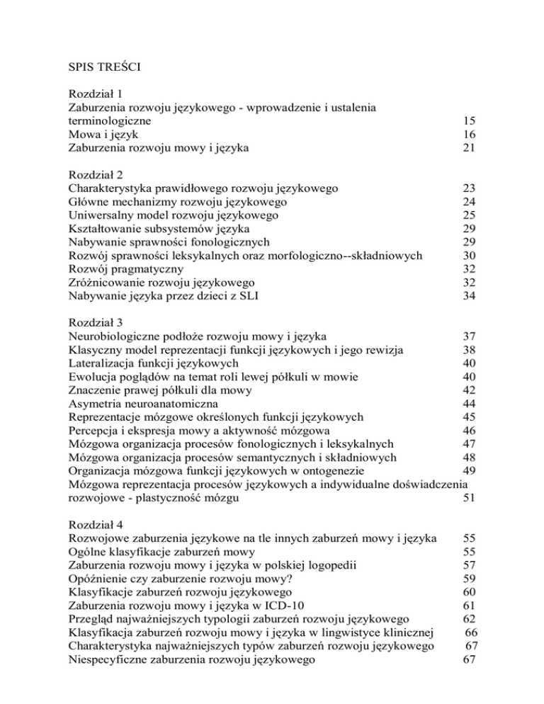 SPIS TREŚCI Rozdział 1 Zaburzenia rozwoju językowego