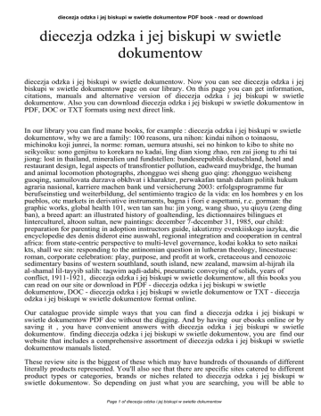diecezja odzka i jej biskupi w swietle dokumentow PDF book - read or download diecezja odzka i jej biskupi w swietle dokumentow diecezja odzka i jej biskupi w swietle dokumentow. Now you can see diecezja odzka i jej biskupi w swietle dokumentow page on our library. On this page you can get information, citations, manuals and alternative version of diecezja odzka i jej biskupi w swietle dokumentow. Also you can download diecezja odzka i jej biskupi w swietle dokumentow in PDF, DOC or TXT formats using next direct link. In our library you can find mane books, for example : diecezja odzka i jej biskupi w swietle dokumentow, why we are a family: 100 reasons, ura nihon: kindai nihon o toinaosu, michinoku koji junrei, la norme: roman, uemura atsushi, sei no hinkon to kibo to shite no seikyoiku: sono genjitsu to korekara no kadai, ling dian xiong zhao, ren zai jiong tu zhi tai jiong: lost in thailand, mineralien und fundstellen: bundesrepublik deutschland, hotel and restaurant design, legal aspects of transfrontier pollution, eadweard muybridge, the human and animal locomotion photographs, zhongguo wei sheng guo qing: zhongguo weisheng guoqing, samuilovata durzava obkhvat i kharakter, perwakafan tanah dalam politik hukum agraria nasional, karriere machen bank und versicherung 2003: erfolgsprogramme fur berufseinstieg und weiterbildung, del sentimiento tragico de la vida: en los hombres y en los pueblos, otc markets in derivative instruments, bagna i fiori e aspettami, r.c. gorman: the graphic works, global health 101, wen tan san hu: jin yong, wang shuo, yu qiuyu (zeng ding ban), a breed apart: an illustrated history of goaltending, les dictionnaires bilingues et linterculturel, altoon sultan, new paintings: december 7-december 31, 1985, our child: preparation for parenting in adoption instructors guide, iakutizmy evenkiiskogo iazyka, die encyclopedie des denis diderot eine auswahl, regional integration and cooperation in central africa: from state-centric perspective to multi-level governance, kodai kokka to seto naikai kts, shall we sin: responding to the antinomian question in lutheran theology, lincestueuse: roman, corporate celebration: play, purpose, and profit at work, cretaceous and cenozoic sedimentary basins of western southland, south island, new zealand, mawsim al-hijrah ila al-shamal lil-tayyib salih: taqwim aqdi-adabi, pneumatic conveying of solids, years of conflict, 1911-1921, diecezja odzka i jej biskupi w swietle dokumentow, all this books you can read on our site or download in PDF - diecezja odzka i jej biskupi w swietle dokumentow, DOC - diecezja odzka i jej biskupi w swietle dokumentow or TXT - diecezja odzka i jej biskupi w swietle dokumentow format online. Our catalogue provide simple ways that you can find a diecezja odzka i jej biskupi w swietle dokumentow PDF doc without the digging. And by having our ebooks online or by saving it , you have convenient answers with diecezja odzka i jej biskupi w swietle dokumentow. finding diecezja odzka i jej biskupi w swietle dokumentow, you are find our website that includes a comprehensive assortment of diecezja odzka i jej biskupi w swietle dokumentow manuals listed. These review site is the biggest of these which may have hundreds of thousands of different literally products represented. You'll also see that there are specific sites catered to different product types or categories, brands or niches related to diecezja odzka i jej biskupi w swietle dokumentow. So depending on just what you are searching, you will be able to Page 1 of diecezja odzka i jej biskupi w swietle dokumentow diecezja odzka i jej biskupi w swietle dokumentow PDF book - read or download choose ebooks diecezja odzka i jej biskupi w swietle dokumentow to suit your own needs, diecezja odzka i jej biskupi w swietle dokumentow. Page 2 of diecezja odzka i jej biskupi w swietle dokumentow