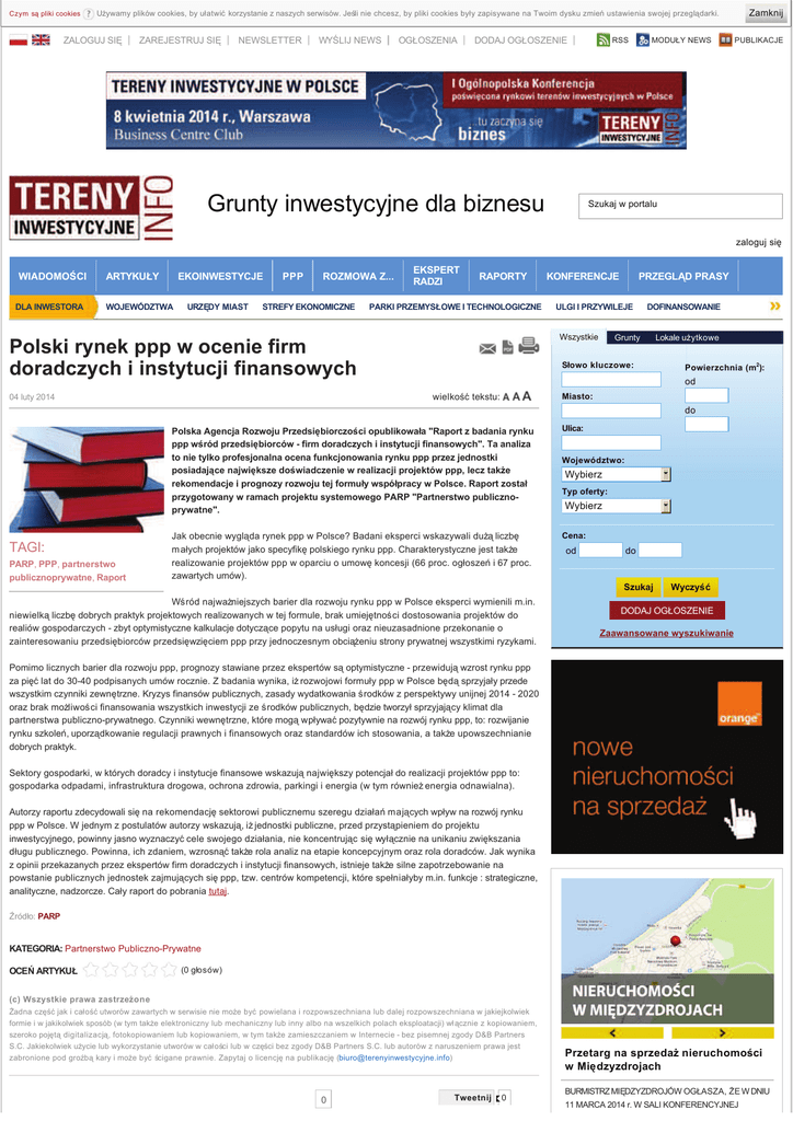 Czym sąpliki cookies UĪ\ZDP\SOLNyZFRRNLHVE\Xáatwiü NRU]\VWDQLH]QDV]\FKVHUZLVyZ-HĞli nie chcesz, by pliki cookies byáy zapisywane na Twoim dysku zmieĔustawienia swojej przeglądarki. ZALOGUJ SIĉ ZAREJESTRUJ SIĉ NEWSLETTER WYĝLIJ NEWS OGàOSZENIA DODAJ OGàOSZENIE Grunty inwestycyjne dla biznesu RSS MODUàY NEWS Zamknij PUBLIKACJE Szukaj w portalu zaloguj siĊ WIADOMOĝCI DLA INWESTORA ARTYKUàY EKOINWESTYCJE :2-(:Ï'=7:$ URZĉDY MIAST PPP ROZMOWA Z... STREFY EKONOMICZNE EKSPERT RADZI RAPORTY PARKI PRZEMYSàOWE I TECHNOLOGICZNE Polski rynek ppp w ocenie firm doradczych i instytucji finansowych OXW\ KONFERENCJE PRZEGLĄD PRASY ULGI I PRZYWILEJE Wszystkie DOFINANSOWANIE Grunty Lokale uĪytkowe Sáowo kluczowe: Powierzchnia (m2): od Miasto: wielkoĞütekstu: do TAGI: PARP, PPP, partnerstwo publicznoprywatne, Raport Polska Agencja Rozwoju PrzedsiĊbiorczoĞci opublikowaáa "Raport z badania rynku ppp wĞUyGSU]HGVLĊELRUFyZ- firm doradczych i instytucji finansowych". Ta analiza to nie tylko profesjonalna ocena funkcjonowania rynku ppp przez jednostki posiadające najwiĊksze doĞZLDGF]HQLHZUHDOL]DFMLSURMHNWyZSSSOHF]WDNĪe rekomendacje i prognozy rozwoju tej formuá\ZVSyápracy w Polsce. Raport zostaá przygotowany w ramach projektu systemowego PARP "Partnerstwo publicznoprywatne". Ulica: Jak obecnie wygląda rynek ppp w Polsce? Badani eksperci wskazywali duĪąliczbĊ m aá\FKSURMHNWyZMDNRVSHF\ILNĊpolskiego rynku ppp. Charakterystyczne jest takĪe UHDOL]RZDQLHSURMHNWyZSSSZRSDUFLXRXPRZĊkoncesji (66 proc. ogáoszeĔi 67 proc. ]DZDUW\FKXPyZ Cena: :RMHZyG]WZR Wybierz 6 Typ oferty: Wybierz od 6 do Szukaj WĞUyGQDMZDĪniejszych barier dla rozwoju rynku ppp w Polsce eksperci wymienili m.in. niewielkąliczbĊdobrych praktyk projektowych realizowanych w tej formule, brak umiejĊtnoĞFLGRVWRVRZDQLDSURMHNWyZGR UHDOLyZJRVSRGDUF]\FK- zbyt optymistyczne kalkulacje dotyczące popytu na usáugi oraz nieuzasadnione przekonanie o zainteresowaniu przedsiĊELRUFyZSU]HGVLĊwziĊciem ppp przy jednoczesnym obciąĪeniu strony prywatnej wszystkimi ryzykami. WyczyĞü DODAJ OGàOSZENIE Zaawansowane wyszukiwanie 3RPLPROLF]Q\FKEDULHUGODUR]ZRMXSSSSURJQR]\VWDZLDQHSU]H]HNVSHUWyZVąoptymistyczne - przewidująwzrost rynku ppp za piĊülat do 30-SRGSLVDQ\FKXPyZURF]QLH=EDGDQLDZ\QLNDLĪrozwojowi formuáy ppp w Polsce bĊdąsprzyjaáy przede wszystkim czynniki zewnĊWU]QH.U\]\VILQDQVyZSXEOLF]Q\FK]DVDG\Z\GDWNRZDQLDĞURGNyZ]SHUVSHNW\Z\XQLMQHM- 2020 oraz brak moĪliwoĞci finansowania wszystkich inwestycji ze ĞURGNyZSXEOLF]Q\FKEĊdzie tworzyásprzyjający klimat dla partnerstwa publiczno-prywatnego. Czynniki wewnĊWU]QHNWyUHPRJąwpáywaüSR]\W\ZQLHQDUR]ZyMU\QNXSSSWRUR]ZLMDQLH rynku szkoleĔ, uporząGNRZDQLHUHJXODFMLSUDZQ\FKLILQDQVRZ\FKRUD]VWDQGDUGyZLFKVWRVRZDQLDDWDNĪe upowszechnianie dobrych praktyk. 6HNWRU\JRVSRGDUNLZNWyU\FKGRUDGF\LLQVW\WXFMHILQDQVRZHZVND]XMąnajwiĊkszy potencjaáGRUHDOL]DFMLSURMHNWyZSSSWR JRVSRGDUNDRGSDGDPLLQIUDVWUXNWXUDGURJRZDRFKURQD]GURZLDSDUNLQJLLHQHUJLDZW\PUyZQLHĪenergia odnawialna). Autorzy raportu zdecydowali siĊna rekomendacjĊsektorowi publicznemu szeregu dziaáaĔmających wpá\ZQDUR]ZyMU\QNX SSSZ3ROVFH:MHGQ\P]SRVWXODWyZDXWRU]\ZVND]XMą, iĪjednostki publiczne, przed przystąpieniem do projektu inwestycyjnego, powinny jasno wyznaczyücele swojego dziaáania, nie koncentrując siĊwyáącznie na unikaniu zwiĊkszania dáugu publicznego. Powinna, ich zdaniem, wzrosnąütakĪHURODDQDOL]QDHWDSLHNRQFHSF\MQ\PRUD]URODGRUDGFyZ-DNZ\QLND ]RSLQLLSU]HND]DQ\FKSU]H]HNVSHUWyZILUPGRUDGF]\FKLLQVW\WXFMLILQDQVRZ\FKLVWQLHMHWDNĪe silne zapotrzebowanie na powstanie publicznych jednostek zajmujących siĊSSSW]ZFHQWUyZNRPSHWHQFMLNWyUHVSHániaáyby m.in. funkcje : strategiczne, analityczne, nadzorcze. Caáy raport do pobrania tutaj. ħUyGáo: PARP KATEGORIA: Partnerstwo Publiczno-Prywatne OCEēARTYKUà (0 gáRVyZ (c) Wszystkie prawa zastrzeĪone ĩadna czĊĞüjak i caáoĞüXWZRUyZ]DZDUW\FKZVHUZLVLHQLHPRĪe byü powielana i rozpowszechniana lub dalej rozpowszechniana w jakiejkolwiek IRUPLHLZMDNLNROZLHNVSRVyEZW\PWDNĪe elektroniczny lub mechaniczny lub inny albo na wszelkich polach eksploatacji) wá ącznie z kopiowaniem, szeroko pojĊtądigitalizacją, fotokopiowaniem lub kopiowaniem, w tym takĪe zamieszczaniem w Internecie - bez pisemnej zgody D&B Partners S.C. Jakiekolwiek uĪ\FLHOXEZ\NRU]\VWDQLHXWZRUyZZ caáoĞci lub w czĊĞFLEH]]JRG\'%3DUWQHUV6&OXEDXWRUyZ]QDUXV]HQLHPSUDZDMHVW zabronione pod groĨbąkary i moĪe byü Ğcigane prawnie. Zapytaj o licencjĊna publikacjĊ([email protected]) 0 Tweetnij 0 Przetarg na sprzedaĪnieruchomoĞci w MiĊdzyzdrojach BURMISTRZ MIĉ'=<='52-Ï:2*à$6=$ĩE W DNIU 11 MARCA 2014 r. W SALI KONFERENCYJNEJ