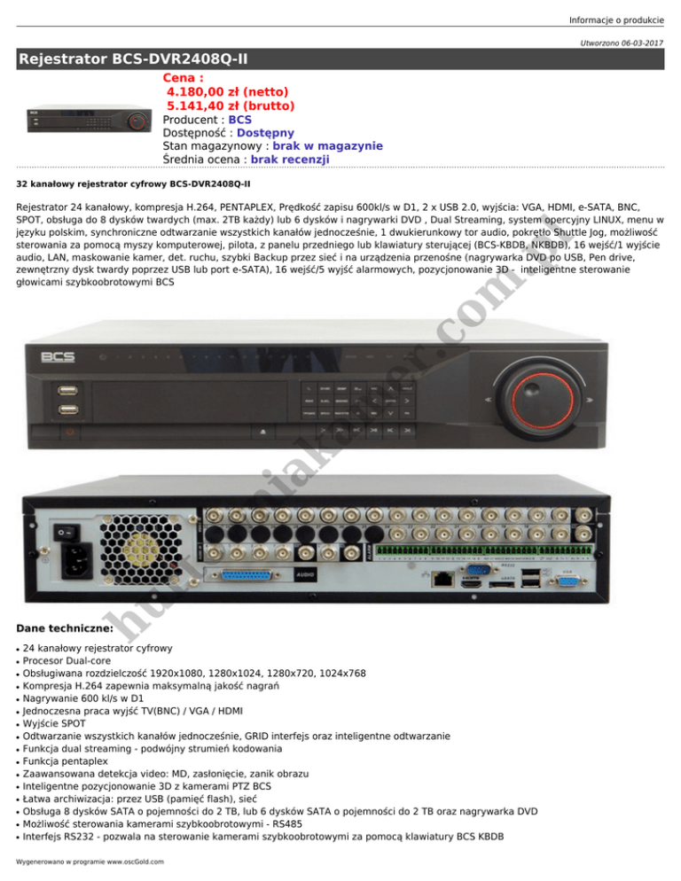 Rejestrator BCS-DVR2408Q-II