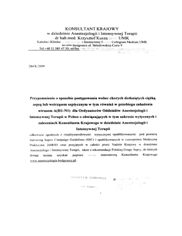 Ancsrez,jsl6giii lntensywnej Terapii, lakzez.rekomendacjiPolskiej G*py Sepsy.do ktorych