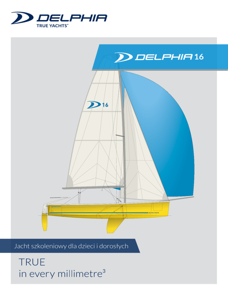Jacht szkoleniowy dla dzieci i dorosłych Delphia 16 to jacht szkoleniowy dla dzieci i dorosłych, którego pomysłodawcami są Karol Jabłoński i Adam Liszkiewicz. Jednostka przeznaczona jest do szkolenia wstępnego dla najmłodszych rozpoczynających żeglarstwo sportowe w tzw. szkółkach żeglarskich oraz do szkolenia podstawowego dla adeptów żeglarstwa. Jacht spełnia wymagania bezpieczeństwa żeglugi w kategorii jachtów sportowych i treningowych. Dane Techniczne Dł. całkowita 5.00 m Szerokość 1.85 m Zanurzenie 0.15 - 0.77 m Wys. Masztu 6.70 m Waga 310 kg Grot: 7.65 m2 Fok: 4.65 m2 Genaker 14.50 m2 Komory wypornościowe 1200 l Załoga 4 - 6 osób Projektant Andrzej Skrzat www.delphia16.eu Karol Jabłoński zawodowy żeglarz, sternik w regatach o Puchar Ameryki, wielokrotny mistrz świata i Europy “Na jachcie Delphia 16 dzieci będą mogły pierwszy raz w życiu przejąć ster, zdobyć podstawowe umiejętności związane z poruszaniem się na jachcie oraz balastowaniem i trymowaniem żagli. Poznają też słownictwo oraz zasady dowodzenia jachtem i prawidłowej komunikacji”. Adam Liszkiewicz menadżer i trener żeglarstwa “Delphia 16 umożliwia rozpoczęcie procesu szkolenia bez stresu związanego z pierwszą samotną żeglugą, bez strachu przed potęgą wody czy silnym wiatrem. To bardzo ważne, bo wiele dzieci zniechęca się po pierwszych niepowodzeniach i już nie wraca do żeglarstwa”.