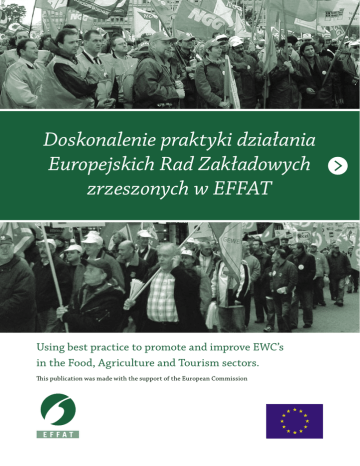 Doskonalenie praktyki działania Europejskich Rad Zakładowych zrzeszonych w EFFAT Using best practice to promote and improve EWC’s in the Food, Agriculture and Tourism sectors. This publication was made with the support of the European Commission Spis treści Spis treści Wstęp ..........................................................................................3 Narzędzia pracy: zasoby on-line w pracy Europejskich Rad Zakładowych (ERZ) .....................................................................5 Nowa dyrektywa w sprawie europejskich rad zakładowych (2009/38/WE) Wstępne omówienie dla związków zawodowych zrzeszonych w EFFAT ...................................................................8 Wielki Kryzys: fakty i skutki dla EFFAT .....................................31 Dobór ekspertów zewnętrznych dla Europejskich Rad Zakładowych zrzeszonych w EFFAT............................................49 Procedura negocjowania przez EFFAT porozumień na poziomie europejskim z przedsiębiorstwami ponadnarodowymi ...............54 Doskonalenie praktyki działania Europejskich Rad Zakładowych zrzeszonych w EFFAT 2 Wstęp Wstęp W branżach stowarzyszonych w EFFAT istnieje obecnie około 100 Europejskich Rad Zakładowych. Większość z nich posiada Koordynatorów ds. EFFAT, służących im pomocą i pośredniczących pomiędzy daną Europejską Radą Zakładową a związkami zawodowymi. Inni przedstawiciele związków zawodowych prowadzą szkolenia i udzielają indywidualnego wsparcia członkom Europejskich Rad Zakładowych (ERZ) będącym jednocześnie członkami danego związku. Ci ludzie są „funkcjonariuszami ds. ERZ” w EFFAT i odgrywają ogromną rolę w prawidłowym działaniu naszych Europejskich Rad Zakładowych. Jednak pomimo ich wysiłków wiele z tych Europejskich Rad Zakładowych nadal jest niedostatecznie wykorzystywanych przez przedstawicieli pracowników jako źródła informacji oraz jako potencjalni sprzymierzeńcy w obliczu ponadnarodowych reorganizacji. Projekt „Towards Advanced Practice” którego wynikiem jest niniejsza publikacja, miał na celu udoskonalenie wsparcia oferowanego przez EFFAT Europejskim Radom Zakładowym poprzez udzielanie pomocy funkcjonariuszom ds. ERZ w wypełnianiu ich zadań. Podczas naszego seminarium w Dublinie wszyscy uczestnicy zgodzili się, że podstawą do tego musi być opracowanie i rozpowszechnienie dobrych narzędzi pracy i dokumentów roboczych. Skutkiem tych dyskusji stworzyliśmy w Ekstranecie EFFAT sekcję poświęconą narzędziom pracy ERZ („EWC Working Tools”) i mamy nadzieję, że zawarte w niniejszym opracowaniu sugestie korzystania z dodatkowych zasobów on-line będą również pomocne. W tegorocznej pracy Europejskich Rad Zakładowych zrzeszonych w EFFAT dominowały dwa wątki – nowa dyrektywa w sprawie Europejskich Rad Zakładowych oraz kryzys gospodarczy. W tych sprawach wypracowaliśmy szczegółowe stanowiska, których omówienie stanowi główny przedmiot niniejszej publikacji. Mamy nadzieję, że będą one mieć dużą wartość dla naszych „funkcjonariuszy ds. ERZ”. Oprócz wiedzy fachowej, jaką Koordynatorzy ds. EFFAT mają do zaoferowania ERZ, projekt „Towards Advanced Practice” zajmował się również wykorzystaniem ekspertów zewnętrznych przez ERZ. W Dublinie rozmawialiśmy ze specjalistami w dziedzinie prawa, rachunkowości i ekonomii zastanawiając się, jakie porady są niezbędne i kiedy. Można z tych rozmów wywnioskować, że kwestie, na temat Doskonalenie praktyki działania Europejskich Rad Zakładowych zrzeszonych w EFFAT 3 Wstęp których ERZ zasięgają opinii ekspertów, są albo podstawowe (np. decyzja skierowania sporu z pracodawcą na drogę sądową), albo nie poddające się uogólnieniom. Jednak większość Europejskich Rad Zakładowych może nauczyć się jaśniejszego precyzowania oczekiwań w stosunku do ekspertów oraz unikania błędów w doborze ekspertów zewnętrznych. Mamy nadzieję, że przedstawione poniżej stanowiska będą w tym pomocne i nadal apelujemy do „funkcjonariuszy ds. ERZ”, aby w razie wątpliwości co do wyboru odpowiedniego eksperta kontaktowali się z Sekretariatem EFFAT. Końcowa część niniejszej publikacji określa politykę EFFAT w sprawie prowadzenia negocjacji na poziomie europejskim z przedsiębiorstwami ponadnarodowymi. Podczas opracowywania szczegółowego stanowiska w tej sprawie korzystaliśmy z doświadczeń innych federacji europejskich związków zawodowych. Uwzględniliśmy jednak również nasze własne doświadczenia oraz statut EFFAT. Myślimy, że nasza polityka na tym zyskała. Mamy nadzieję, że dzięki niej zarówno związki zawodowe, jak i Europejskie Rady Zakładowe zrzeszone w EFFAT zyskają jasne wskazówki co do sposobu działania w sytuacji rosnącego znaczenia europejskich porozumień ramowych oraz wspólnych tekstów dla przedsiębiorstw. Na zakończenie pragniemy podziękować osobom, które wzięły udział w seminarium w Dublinie w styczniu 2009 r. oraz członkom Europejskich Rad Zakładowych, którzy przekazali nam wypełnione kwestionariusze, nieustająco stanowiące dla nas źródło wiedzy o dziedzinach, w których EFFAT może lepiej służyć im pomocą. Zachęcamy wszystkich do dołożenia starań aby członkowie ERZ, którzy dotąd nie przekazali nam wypełnionych kwestionariuszy, zrobili to jak najszybciej. Pragniemy również podziękować ekspertom, którzy podzielili się z nami swoją wiedzą, a szczególnie Profesorowi Trautweinowi, którego opinie były tak cenne dla jednostek stowarzyszonych w EFFAT i który wniósł znaczący wkład w opracowanie niniejszej publikacji. Harald Weidenhofer i Simon Cox Grudzień 2009 Doskonalenie praktyki działania Europejskich Rad Zakładowych zrzeszonych w EFFAT 4 Narzędzia pracy: zasoby on-line w pracy Europejskich Rad Zakładowych (ERZ) Narzędzia pracy: zasoby on-line w pracy Europejskich Rad Zakładowych (ERZ) EFFAT http://www.ef