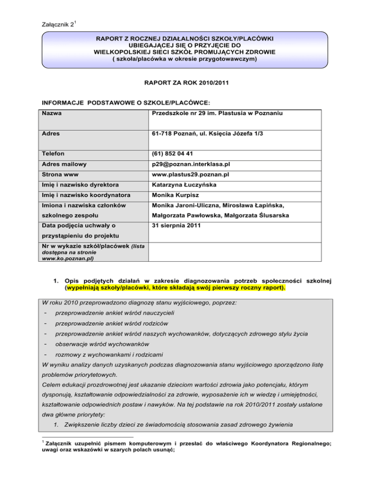 Załącznik 21 RAPORT ZA ROK 2010/2011 INFORMACJE