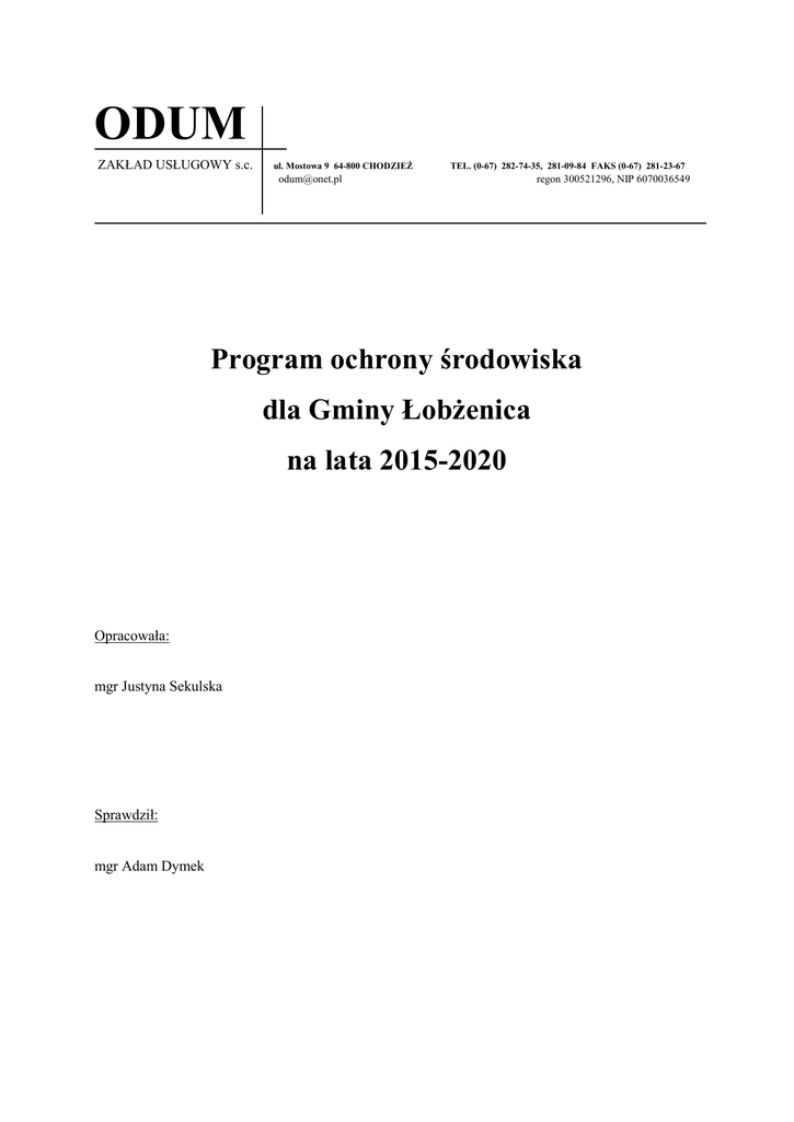 ODUM ZAKŁAD USŁUGOWY s.c. ul. Mostowa 9 64-800 CHODZIEŻ TEL. (0-67) 282-74-35, 281-09-84 FAKS (0-67) 281-23-67 [email protected] regon 300521296, NIP 6070036549 Program ochrony środowiska dla Gminy Łobżenica na lata 2015-2020 Opracowała: mgr Justyna Sekulska Sprawdził: mgr Adam Dymek Program ochrony środowiska dla Gminy Łobżenica na lata 2015-2020 Chodzież, listopad 2014 r Program ochrony środowiska dla Gminy Łobżenica na lata 2015 -2020. 2 . Spis treści 1. Wstęp ............................................................................................................................................. 4 1.1. Podstawa prawna......................................................................................................................... 4 1.2. Cel i zakres opracowania............................................................................................................. 4 1.3. Źródła danych .............................................................................................................................. 5 1.4. Polityka Ekologiczna Państwa ..................................................................................................... 6 2. Charakterystyka Gminy Łobżenica................................................................................................. 7 2.1. Ogólna charakterystyka Gminy ................................................................................................... 7 2.2. Sytuacja demograficzna ............................................................................................................... 8 2.3. Gospodarka .................................................................................................................................. 9 2.4. Infrastruktura inżynieryjno – techniczna ................................................................................... 10 2.4.1. Infrastruktura transportowa ................................................................................................ 10 2.4.2. Zaopatrzenie mieszkańców w wodę ................................................................................... 11 2.4.3. Zaopatrzenie mieszkańców w odprowadzanie ścieków komunalnych ............................... 13 2.4.4. Charakterystyka zaopatrzenia gminy w energię elektryczną .............................................. 17 2.4.5. Charakterystyka zaopatrzenia gminy w gaz ziemny ........................................................... 19 2.4.6. Gospodarka odpadami ........................................................................................................ 20 2.5. Rolnictwo ................................................................................................................................... 25 2.6. Zasoby naturalne ....................................................................................................................... 25 2.7. Turystyka .................................................................................................................................... 26 3. Ochrona zasobów naturalnych....................................................................................................... 29 3.1. Klimat......................................................................................................................................... 29 3.2. Geologia..................................................................................................................................... 29 3.3. Geomorfologia ........................................................................................................................... 30 3.4. Wody powierzchniowe i podziemne ........................................................................................... 30 3.4.1. Wody powierzchniowe na terenie gminy Łobżenica .......................................................... 30 3.4.1.1. Cieki ............................................................................................................................ 31 3.4.1.2. Zbiorniki wodne .......................................................................................................... 33 3.4.2. Wody podziemne ................................................................................................................ 34 3.5. Gleby .......................................................................................................................................... 35 3.6. Powietrze atmosferyczne ............................................................................................................ 37 3.7. Hałas i wibracje ......................................................................................................................... 41 3.8. Pola elektromagnetyczne ........................................................................................................... 42 3.9. Formy ochrony przyrody ............................................................................................................ 43 3.10. Lasy i gospodarka leśna ........................................................................................................... 48 4.Strategia ochrony środowiska ......................................................................................................... 49 4.1. Realizacja celów i kierunków działań zawartych w Aktualizacji Programu Ochrony Środowiska z 2009 r. ............................................................................................................................................ 49 4.2. Określenie podstawowych problemów dotyczących ochrony środowiska w Gminie Łobżenica. .......................................................................................................................................................... 52 Program ochrony środowiska dla Gminy Łobżenica na lata 2015 -2020. 3 . 4.3. Cele i kierunki działań ........................................