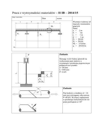 Praca z wytrzymałości materiałów – II IB – 2014/15