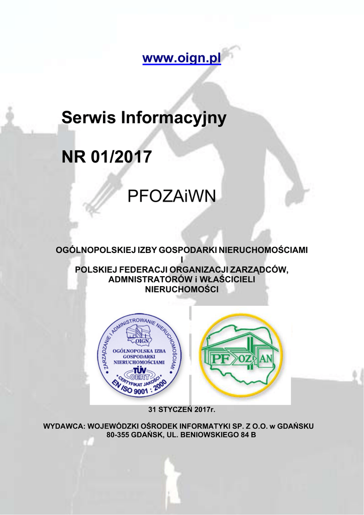 www.oign.pl Serwis Informacyjny NR 01/2017 PFOZAiWN OGÓLNOPOLSKIEJ IZBY GOSPODARKI NIERUCHOMOŚCIAMI I POLSKIEJ FEDERACJI ORGANIZACJI ZARZĄDCÓW, ADMNISTRATORÓW i WŁAŚCICIELI NIERUCHOMOŚCI 31 STYCZEŃ 2017r. WYDAWCA: WOJEWÓDZKI OŚRODEK INFORMATYKI SP. Z O.O. w GDAŃSKU 80-355 GDAŃSK, UL. BENIOWSKIEGO 84 B S e r w i s i n f o r m a c y j n y O I G N i P FO Z AiWN N r 1 Serwis Informacyjny Nr 1 Z 31 stycznia 2017r. PFOZ AiWN 2017 STRON OGÓLNOPOLSKIEJ IZBY GOSPODARKI NIERUCHOMOŚCIAMI I POLSKIEJ FEDERACJI ORGANIZACJI ZARZĄDCÓW, ADMINISTRATORÓW i WŁAŚCICIELI NIERUCHOMOŚCI 1/57 S e r w i s i n f o r m a c y j n y O I G N i P FO Z AiWN N r 1 Wydawca: Wojewódzki Ośrodek Informatyki Sp. z o.o. działający jako Biuro Obsługi PFOZAiWN i OIGN 80-355 Gdańsk, ul. Beniowskiego 84B Adres do korespondencji: 80-355 Gdańsk, ul. Beniowskiego 84B tel./fax 058 558 45 21 do 25 : 058 557 28 54 e-mail: [email protected] 2/57 S e r w i s i n f o r m a c y j n y O I G N i P FO Z AiWN N r 1 SPIS TREŚCI: 1. 2. 3. 4. 5. Pytania i odpowiedzi……………….............………………………………4-40 ZZ „Budowlani” w sprawie ustawy i kodeksu urbanistycznego................41-44 Kompetencje organów nadzoru budowlanego.............................................45-47 Wyroki SN z zakresu Prawa Pracy w 2016 r...............................................48-53 Spółdzielnie Mieszkaniowe – dożywotni prezesi.........................................54-57 3/57 S e r w i s i n f o r m a c y j n y O I G N i P FO Z AiWN N r 1 Pytanie Za raportem Fundacji Gospodarki i Administracji Publicznej „Państwo i my” Osiem głównych grzechów Rzeczypospolitej. Nie podoba się nam oskładkowanie umów o dzieło składką emerytalną Odpowiedź Autorzy stawiają pytanie, dlaczego państwo nie funkcjonuje prawidłowo i jak to naprawić. Zauważają w tym kontekście także system prawny. Wśród czynników blokujących tworzenie dobrego prawa wskazuje się postępującą inflację prawa, poprzez którą próbuje się rozwiązywać wszelkie problemy ekonomiczne, społeczne i światopoglądowe, oraz osłabienie klasycznego modelu prawa narodowego z uwagi na kształtowanie się policentrycznego systemu prawa (w tym wpływu prawa UE). W tym ujęciu brakuje konsekwentnej hierarchizacji aktów prawnych, postulowane procedury związane z weryfikacją projektów nierzadko są fikcją, a konkretne ustawy czy rozporządzenia traktowane instrumentalnie jako narzędzie osiągania doraźnych celów. Ciekawy jest głos z odmiennej perspektywy wyrażony przez Cezarego Kaźmierczaka (DGP z 22 września 2016 r.). Autor też dostrzega znaczące przeregulowanie aktów prawnych. Zgodnie z tym ujęciem ustawy nie mogą wchodzić w nadmierne szczegóły, powinno się za to wprowadzić instytucje sponsora ustawy (osoby odpowiedzialnej za nią) i znaczące ograniczyć ich liczbę. Czas na rozwiązanie, które zapewni równe zasady gry wszystkim pracownikom. Instytut Badań Strukturalnych. Propozycja obłożenia umów o dzieło składką emerytalną i rentową nie jest niespodzianką. To kolejny krok zmierzający do zniwelowania różnic w oskładkowaniu umów o pracę i umów cywilnoprawnych. Wcześniejsze posunięcia – oskładkowanie umów-zleceń od poziomu płacy minimalnej, limit 50-proc kosztów autorskich w PIT, wprowadzenie minimalnej stawki godzinowej 12 zł brutto dla umów-zleceń – poprawiały pozycję w systemie zabezpieczenia społecznego osób pracujących na umowach cywilnoprawnych, ale prowadziły też do podniesienia kosztów stosowania tych umów. Nieoskładkowane i nieobjęte płacą minimalną umowy o dzieło mogą stać się teraz kolejnym obliczem fikcji zatrudniania w Polsce. Przecież już w 2013 r. Sąd Najwyższy ( w wyroku z 18 września 2013 r. II UK 39/13) wyraził stanowisko, że dziełem może być nawet malowanie ścian w biurze firmy, która dostarczyła wszystkie materiały (oraz oczywiście ściany), a wykonawca miał po prostu wykonać remont. Objęcie dzieł składkami może po prostu okazać się łataniem kolejnej dziury, przez którą wyciekają pracownicy i strumień składek. Z drugiej strony koegzystencja umów o pracę i umów cywilnoprawnych na rynku pracy będzie miała coraz mniejszy sens. Odróżnienie faktycznych twórców i faktycznych zleceniobiorców od pracowników de facto etatowych, ale na umowach cywilnoprawnych , będzie praktycznie niemożliwe – w 2015 r na zleceniach pracowało nieco ponad milion osób, a Państwowa Inspekcja Pracy skontrolowała 13 tys. umów. Faktyczni twórcy (np. obrazów) zapłacą składki od faktycznych dzieł, a fikcyjni twórcy (np. pomalowanych starannie ścian) i tak nie będą mieli ochrony przed zwolnieniem ani prawa do urlopu. Mozaika składowych i kodeksowych łątek nie będzie ani łatwa do zrozumienia, ani szczelna. Czas pomyśleć nad rozwiązaniem, które zapewni równe zasady gry wszystkim pracownikom i nie będzie wymagało przerośniętego systemu kontroli. Może nim być np. jednolita umowa o pracę. Każda praca wykonywana przez osobę podległą ekonomicznie pracodawcy czy też zamawiającemu może być podstawą do odprowadzenia składek i nabywania praw do zabezpieczenia społecznego. Jednak dla osób słabo zarabiających, najczęściej trafiających na umowy cywilnoprawne w miejsce etatu, łącznie obciążenia muszą być niższe niż teraz. Niestety żadna z dotychczasowych zmian w odpowiedzi na segmentację rynku pracy nie ułatwiała zatrudniania na etat. FUS na oskładkowaniu dzieł skorzysta, ale rynek pracy i gospodarka potrzebują rozwiązania bardziej kompleksowego. Różnice w oskładkowaniu „wypychają” osoby o niższych zarobkach na umowy o dzieło. Główny ekonomista ZUS. Zróżnicowanie obciążeń finansowych ze względu na rodzaj kontraktu pracy zachęca do 4/57 S e r w i s i n f o r m a c y j n y O I G N i P FO Z AiWN N r 1 optymalizacji podatkowej. Przykład: przy dochodach w wysoko