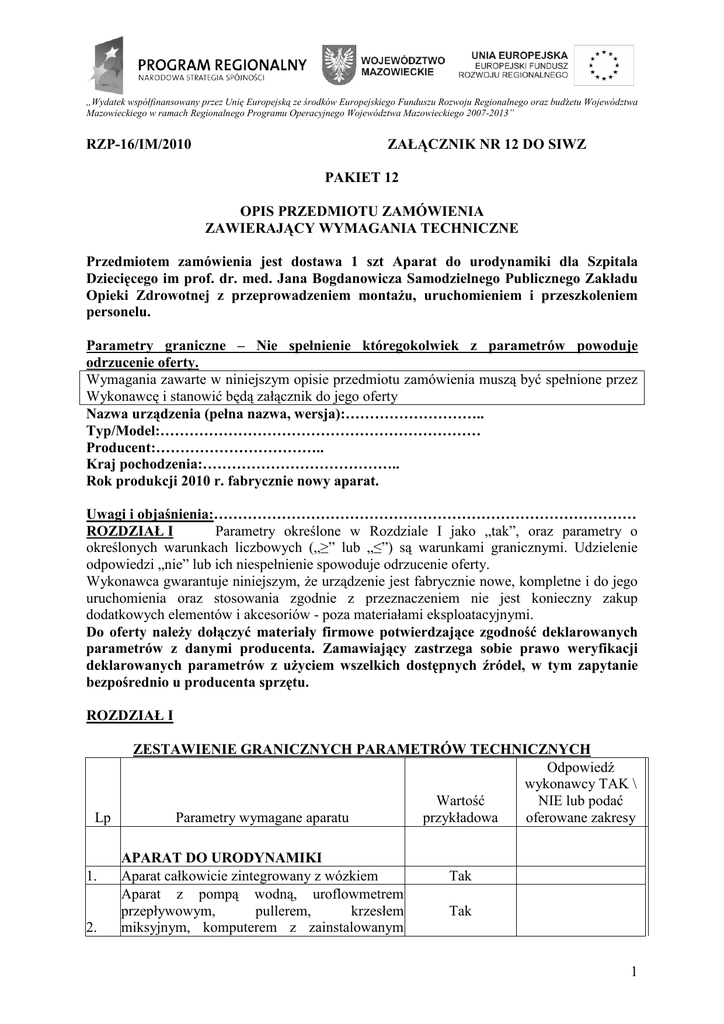 Zalacznik Nr 12 PAKIET 12-Aparat do urodynamiki