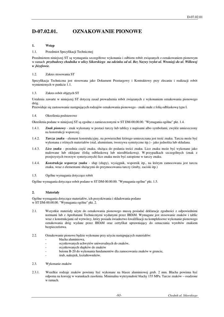 D-07.02.01. OZNAKOWANIE PIONOWE