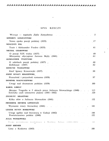 SPIS RZECZY W s t ę p — napisała Zofia Szmydtowa SEWERYN 5 GOSZCZYNSKI Nowa epoka poezji polskiej (1835) 17 WINCENTY POL Teatr i Aleksander Fredro (1835) 41 MICHAŁ GHABOWSKI O poezji XIX wieku (1837) Mieszaniny obyczajowe Jarosza Bejły (1841) ALEKSANDER 49 61 TYSZYNSKI O szkołach poezji polskiej (1837) . Kollokacja (1847) EDMUND 68 82 WASILEWSKI Józef Ignacy Kraszewski (1837) 88 JOZEF IGNACY KRASZEWSKI, Przeszłość i przyszłość romansu (1838) 97 DOMINIK MAGNUSZEWSKI Uwagi nad dramatem polskim (1839) 100 KAROL LIBELT Mazepa. Tragedia w 5 aktach przez Juliusza Słowackiego (1840) . Estetyka czyli umnictwo piękne (1841—1842) ZYGMUNT . . 113 120 KRASIŃSKI Kilka słów o Juliuszu Słowackim (1841) 132 FRYDERYK HENRYK LEWESTAM Wyznanie wiary literackiej (1841) . . . 141 LESZEK DUNIN BORKOWSKI Uwagi ogólne nad literaturą w Galicji (1842) Powieściarstwo polskie (1848) 144 152 JULIA WOYKOWSKA P i s m a p e r i o d y c z n e w y c h o d z ą c e w Wielkiej P o l s c e (1842—1843) . . . . 162 JOZEF KREMER Listy z Krakowa (1843) 180 Spis 540 rzeczy EDWARD DEMBOWSKI Młoda piśmienność warszawska (1843) [Ulana] (1843) O dramacie w dzisiejszym piśmiennictwie polskim (1843) 195 206 208 WOJCIECH CYBULSKI Mickiewicza moralne i poetyckie stanowisko (1845) 231 JAN MAJORKIEWICZ [O literaturze współczesnej] Poezja dydaktyczna, Epos i Lira (1847) . . 248 ANTONI NOWOSIELSKI Kilka myśli o powieści i jej formie (1857) 257 LUCJAN SIEMIENSKI Wioskowy sentymentalizm i naga rzeczywistość. Poematu Syrokomli i Obrazki wiejskie Wielogłowskiego (1859) 266 KORNEL UJEJSKI . 278 Trzy poemata Juliusza Słowackiego, Bajki i Poezje Antoniego Góreckiego, Poemat o piekle Dantyszka (1839) Wspomnienie o piśmiennictwie polskim w Emigracji (1840) . . . . . JULIUSZ SŁOWACKI 298 301 O Januszu i o panu Wincentym Polu (1860) STANISŁAW ROPELEWSKI Kilka słów odpowiedzi na artykuł Pana Z. K. o Poezjach Juliusza Słowackiego (1839) Krytyka krytyki i literatury 317 319 LEON ZIENKOWICZ [Literatura] (1841) 381 ADAM MICKIEWICZ Lekcja VIII (1843) Lekcja XVI (1843) 335 339 JULIAN KLACZKO [Krewni Korzeniowskiego] 347 CYPRIAN KAMIL NOKÍWID O Juliuszu Słowackim w sześciu publicznych posiedzeniach (z dodatkiem rozbioru Balladyny) (1861) , 360 OBJAŚNIENIA Seweryn Goszczyński (1801—1876) (oprac. Maria Grabowska) Nowa epoka poezji polskiej . . . Wincenty Poi (1807—1872) (oprac. Maria Grabowska) . . Teatr i Aleksander Fredro . 337 378 . . . . .384 385 Spis rzeczy 541 Michal Grabowski (1304—1863) (oprac. Maria Straszewska) O poezji XIX wieku Mieszaniny obyczajowe Jarosza Bejły A l e k s a n d e r T y s z y ń s k i (1812—1880) O szkołach poezji polskiej Kollokacja E d m u n d W a s i l e w s k i (1814—1846) Józef I g n a c y K r a s z e w s k i (oprac. (oprac. Maria 389 391 393 Straszewska) . . . . Maria Grabowska) 406 406 Józef I g n a c y K r a s z e w s k i (1812—1887) (oprac. Maria Straszewska) . Przeszłość i przyszłość r o m a n s u . . . D o m i n i k M a g n u s z e w s k i (1810—1845) ( o p r a c . M a r i a Grabowska) Uwagi nad d r a m a t e m polskim . . . . K a r o l Libelt (1807—1875) (oprac. Maria Straszewska) Mazepa. T r a g e d i a w 5 a k t a c h p r z e z J u l i u s z a S ł o w a c k i e g o E s t e t y k a czyli u m n i c t w o p i ę k n e Z y g m u n t K r a s i ń s k i (1812—1859) ( o p r a c . M a r i a Straszewska) K i l k a słów o J u l i u s z u S ł o w a c k i m . . . 408 409 . . . 414 414 . . . 419 420 421 . . . 424 424 . 426 426 . 428 428 433 F r y d e r y k H e n r y k L e w e s t a m (1817—1878) (oprac. Maria Straszewska) . Wyznanie wiary literackiej . Leszek D u n i n B o r k o w s k i (1811—1896) ( o p r a c . U w a g i ogólne n a d l i t e r a t u r ą w Galicji P o w i e ś c i a r s t w o polskie Maria 398 399 404 Grabowska) . . . . J u l i a W o y k o w s k a (1815—1815) ( o p r a c . Maria Grabowska) P i s m a p e r i o d y c z n e w y c h o d z ą c e w Wielkiej P o l s c e 437 437 Józef K r e m e r (1806—1875) (oprać. Maria Grabowska) Listy z Krakowa 444 444 E d w a r d D e m b o w s k i (1822—1846) ( o p r a c . Maria Grabowska) Młoda piśmienność warszawska [Ulana] O dramacie w dzisiejszym piśmiennictwie polskim 446 447 451 452 Wojciech Cybulski (1808—1867) (oprać. Maria Grabowska) Mickiewicza moralne i poetyckie stanowisko 456 456 J a n Majorkiewicz (1820—1847) (oprac. Maria Straszewska) [O literaturze współczesnej] 461 462 Antoni Nowosielski (Antoni Marcinkowski 1823—1880) (oprac. M. Kilka myśli o powieści i jej formie Straszewska) Lucjan Siemieński (1807—1877) (oprac. Maria Grabowska) Wioskowy sentymentalizm i naga rzeczywistość . Kornel Ujejski (1823—1897) ( o p r a c . Maria Grabowska) O Januszu i o panu Wincentym Polu . 468 469 472 473 . . Stanisław Ropelewski (1813—1865) (oprac. Maria Straszewska) . Trzy poemąta Juliusza Słowackiego Wspomnienie o piśmiennictwie polskim w Emigracji . . . . . . . 475 475 . . 481 482 483 542 Spis rzeczy Juliusz Słowacki (1809—1849) (oprac. Maria Straszewska) Kilka słów odpowiedzi na artykuł P a n a Z. K. o Poezjach Juliusza Słowackiego Krytyka krytyki i literatury 486 487 Leon Zienkowicz (1808—1870) (oprac. Maria Straszewska) [Literaturia] 488 488 Adam Mickiewicz (1798—1856) ( o p r a c . Maria Lekcja VIII Lekcja XVI Straszewska) . . . . . 486 490 491 491 Julian Klaczko (1825—1906) ... (oprac. Maria Straszewska) [Krewni Korzeniowskiego] 494 495 Cyprian Kamil Norwid (1821—1883) ... ( o p r a c . Maria Straszewska) . . . . O Juliuszu Słowackim w sześciu publicznych posiedzeniaoh (z dodatkiem rozbioru Balladyny) 497 497 Indeks nazwisk do t. I, II (oprac. Mario Grabowska i Romana Indeks czasopism do t. I, II (oprac. Maria Grabowska i Romana 502 536 Steczowicz) Steczowicz) Artykuły Philopolskiego, Walentego Chłędowskiego oraz S. i A. P. w t. I, s. 421—429 opracowała Ewa Warzenica, nie — jak pomyłkowo podano — Julian Krzyżanowski.