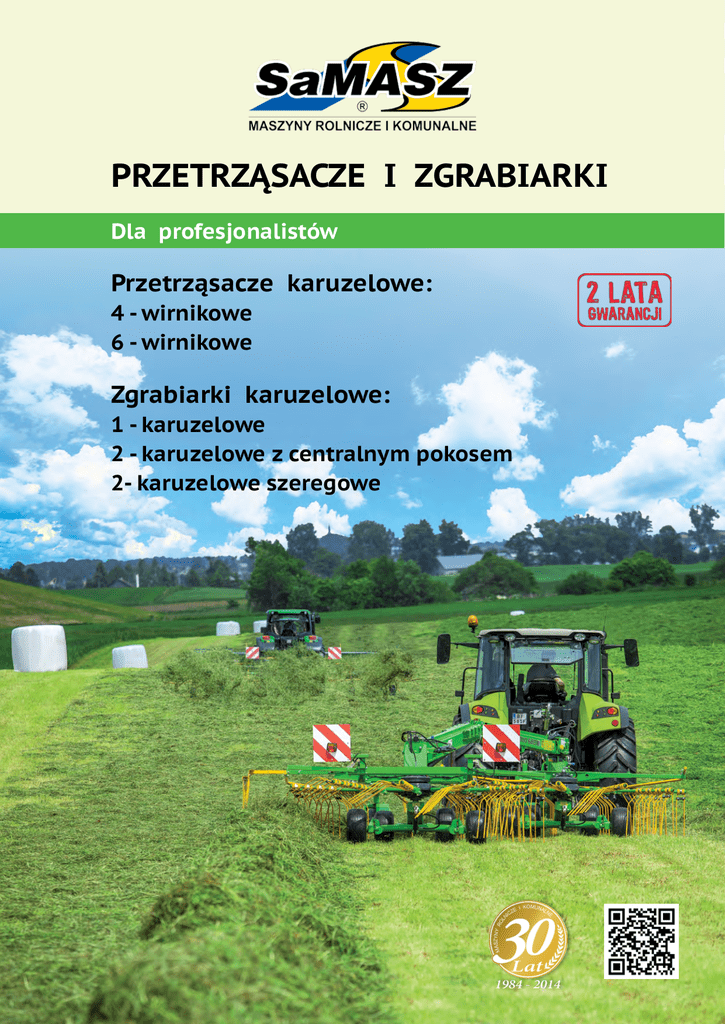 PRZETRZĄSACZE I ZGRABIARKI Dla profesjonalistów Przetrząsacze karuzelowe: 4 - wirnikowe 6 - wirnikowe Zgrabiarki karuzelowe: 1 - karuzelowe 2 - karuzelowe z centralnym pokosem 2- karuzelowe szeregowe 1 ... 30 lat doświadczenia Strona Zdolność gospodarstwa do przygotowania wysokiej jakości pasz objętościowych jest jedną z najważniejszych cech wyróżniającą nowoczesną produkcję mleka i mięsa. PRZETRZĄSACZE KARUZELOWE P4 - 470, P4 - 530, P6 - 770 4 -5 Dostęp do wysokiej klasy sprzętu technicznego, spełniającego coraz większe wymagania stawia wyzwanie podczas prac konstrukcyjnych. ZGRABIARKI 1 - KARUZELOWE Z - 300, Z - 350, Z - 410, Z - 470 6 -7 Wychodząc naprzeciw tym potrzebom oferujemy rozwiązania technologiczne najwyższej jakości, poparte 30 letnim doświadczeniem w tworzeniu maszyn będących Państwa sukcesem! Zaufało nam już wielu, nasze maszyny tworzymy z pasją, z myślą o rolniku! 2 ZGRABIARKA 2 - KARUZELOWA Z2 - 780 ZGRABIARKA 2 - KARUZELOWA SZEREGOWA DUO - 680 8 - 11 12 - 15 3 PERFEKCYJNIE PODSUSZĄ Przetrząsacze karuzelowe P4 - 470 P4 - 530, P4 - 530 C P6 - 650 P6 - 770 P6 - 650 w pracy Oferta przetrząsaczy zawiera pięć modeli maszyn. Oferujemy trzy modele z czterema wirnikami: P 4 - 470 i P 4 - 530, P 4 - 530 C (wersja ciągniona) oraz model sześciowirnikowy P 6 - 650 i P 6 - 770. Dzięki wysokiej wydajności, jakości wykonania i mocnej konstrukcji, przetrząsacze mają ugruntowaną pozycję na rynku polskim i przebojem zdobywają rynki zagraniczne. Porada producenta Rozrzut zielonki Możemy ustawić pracę kół bliżej palców grabiących - na nierówne tereny, co umożliwia pracę na większym kącie przetrząsania. Uzyskujemy dzięki temu lepszy efekt pracy. Możliwość skrętu kół w lewo o kąt 17° stosujemy jeżeli pracujemy na skraju łąki po prawej stronie, natomiast - w prawo, jeżeli skraj łąki jest po lewej stronie. Możliwość perfekcyjnego przetrząsania pokosów o różnej grubości dzięki kątowi rozrzutu regulowanemu według potrzeb użytkownika. Kosiarka 1,80 m Kosiarka 2,20 m Kosiarka 2,60 m Kosiarka 3,00 m Kosiarka 3,40 m Wirnik Przekładnia Solidna, hermetyczna konstrukcja wszystkich przekładni przetrząsacza pracujących w oleju, zapewnia długą żywotność. Równomierne rozmieszczenie pokosu dzięki idealnemu nakładaniu się pracy wirników. Transport Ramiona przetrząsacza są składane i rozkładane do/z pozycji transportowej poprzez zastosowanie cylindrów hydraulicznych. Po podniesieniu do pozycji transportowej, maszyna jest stabilizowana automatycznie za ciągnikiem. P4 - 470 P4 - 530 P6 - 650 P6 - 770 Układ zawieszenia Koła Ochrona przed owijaniem się pokosu na kołach kopiujących zapewnia płynną pracę nawet przy gęstym pokosie. Układ zawieszenia jest wyposażony w mechanizm, dzięki któremu przy podnoszeniu, maszyna ustawia się w położeniu centralnym. Naprężenie amortyzatorów stanowi dodatkowe wsparcie. Palce grabiące Zastosowanie nowej konstrukcji ramienia w celu zapobiegania odkręcenia i łamania palców przetrząsacza. P 4 - 530 C Typ maszyny P 4 - 470 P 4 - 530 P 6 - 650 P 6 - 770 Szerokość robocza [m] 4,7 5,3 6,5 7,7 5,3 Szerokość transportowa [m] 3 3 3 3 3 Wysokość transportowa [m] 2,6 2,7 3,6 4,0 2,7 Liczba wirników [szt.] 4 4 6 6 4 Liczba ramion wirnika [szt.] 6 6 6 6 6 Obroty WOM [obr./min] 540 540 540 540 540 Moc ciągnika [KM] od 30 od 40 od 50 od 60 od 30 Opony 16 x 6,5 16 x 6,5 16 x 6,5 16 x 6,5 16 x 6,5 Masa [kg] 615 630 860 905 650 ciągniona * W opcji istnieje możliwość wyposażenia maszyny w zaczep aktywny 4 5 LEKKIE I ŁATWE W OBSŁUDZE Zgrabiarki 1 - karuzelowe Z - 300 Z - 350 Z - 410 Z - 470 Zgrabiarki Z - 300, Z - 350, Z - 410, Z - 470 są 1 - karuzelowymi zgrabiarkami dla mniejszych i średnich gospodarstw. Maszyny te występują w szerokościach roboczych od 3 do 4,7 m. Amortyzacja Dwustronna skuteczna amortyzacja naprężające się sprężyny amortyzatorów obustronnie ustawiane, wyposażenie seryjne przy Z - 410 oraz Z - 470. Podczas podnoszenia maszyny oraz transportu, amortyzatory gwarantują stabilność maszyny. Zalety zgrabiarek Z - 410, Z - 470 i Z 2 - 780 Z - 410 Zgrabiarki SaMASZ charakteryzują się innowacyjnymi rozwiązaniami, dzięki którym oszczędzasz pieniądze: < Przekładnie pracujące w oleju - wysoka trwałość i długi okres użytkowania. < Ramię grabiące montowane z ramieniem przekładni na podwójnych wspornikach - zdjęcie 1 i 2, charakteryzuje się długotrwałym okresem użytkowania. < Wysokość regulacji palców - sprężyn nad polem, reguluje się na 2 sposoby: - korbą na przekładni - montażem podwozia w standardzie producent montuje na łąki twarde 21 cm, w przypadku łąk miękkich poprzez odwrócenie tandemów o 180° - uzyskuje się wysokość 16 cm. Regulacja podwoziem jest bardzo ważna, ponieważ zwiększa trwałość eksploatacyjną tulei dolnej przekładni. Układ jezdny Z - 350 Przekładnia karuzelowa Z - 470 Nie każda łąka jest równa i gładka - aby uzyskać czyste zgrabianie, niezbędne jest dokładne kopiowanie terenu. W zgrabiarkach Z - 410, Z - 470 i Z 2 - 780 zastosowaliśmy tandemowy układ jezdny, który ułatwia kopiowanie terenu. Demontaż zgrabiarki Łatwo demontowalne ramiona, osadzone w uchwytach transportowych oraz podnoszone ekrany zmniejszają szerokość zgrabiarki zarówno w transporcie, jak i podczas magazynowania. Palce Z - 410 Transport Zgrabiarka 1- karuzelowa jest łatwa w transporcie i podczas magazynowania, co umożliwiają demontowalne ramiona zgrabiarki (patrz str. 7). Zaczep Palce sprężyste wykonane są z najwyższej klasy drutu sprężynowego, gwarantują długotrwałą pracę. Montowane po 3 szt. na ramieniu grabiącym Z - 300 i Z - 350 oraz po 4 szt. - na ramieniu Z - 410 i Z - 470. 1 2 Typ zgrabiarki Z - 300 Z - 350 Z - 410 Z - 470 Szerokość robocza [m] 3,0 3,5 4,1 4,7 Szerokość transportowa [m] 1,5 1,5 1,6 2,3 Liczba ramion wirnika [szt.] 8 9 11 13 Ilość spr