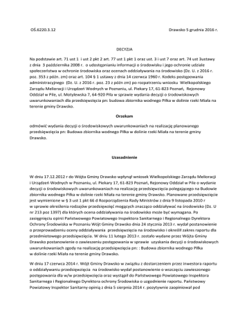 OŚ.6220.3.12 Drawsko 5 grudnia 2016 r. DECYZJA Na podstawie