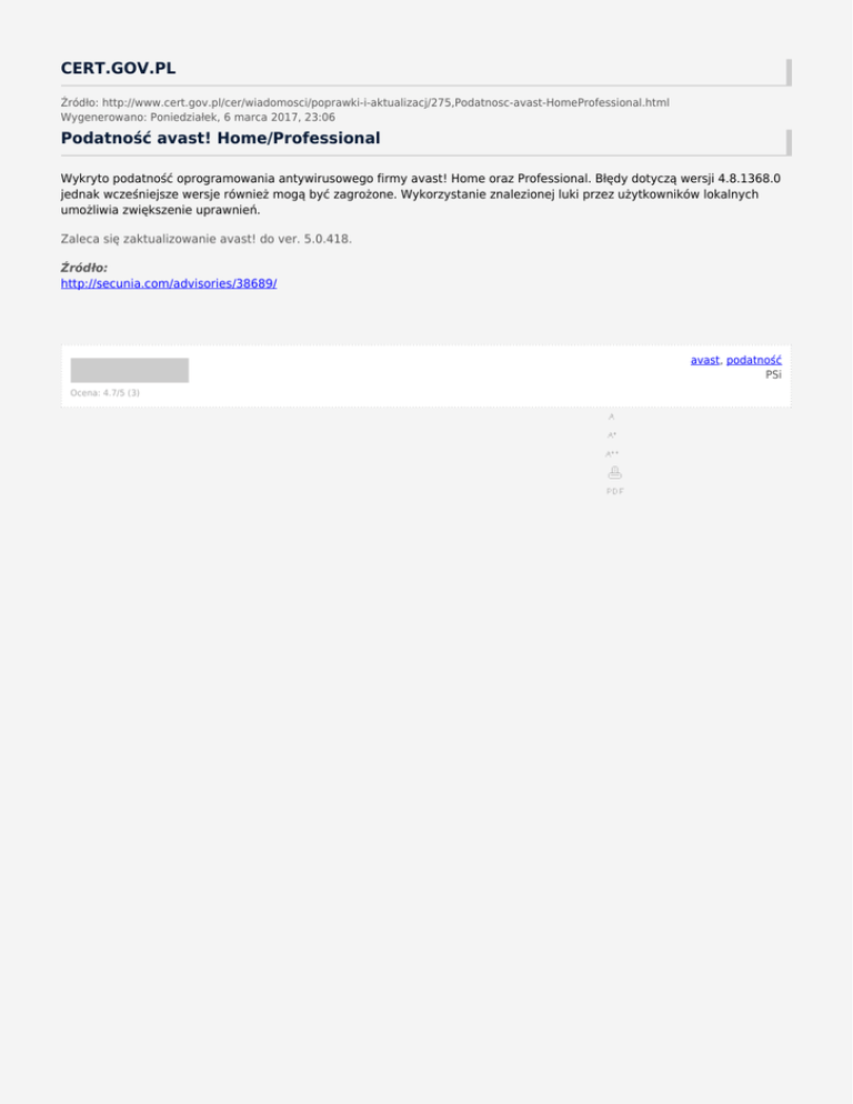 Podatność avast! Home/Professional