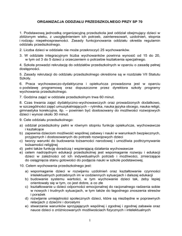 1 ORGANIZACJA ODDZIAŁU PRZEDSZKOLNEGO PRZY SP 70 1