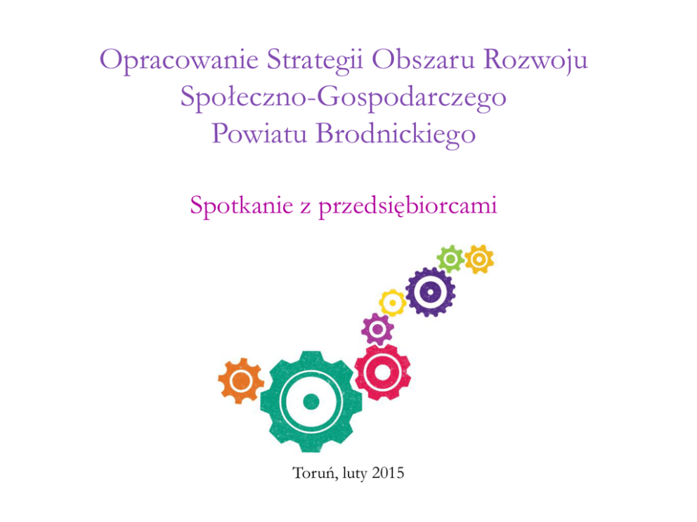 Opracowanie Strategii Obszaru Rozwoju Społeczno-Gospodarczego Powiatu Brodnickiego Spotkanie z przedsiębiorcami Toruń, luty 2015 Wsparcie w ramach polityki terytorialnej Oś Priorytetowa 3 Efektywność energetyczna i gospodarka niskoemisyjna w regionie PI 4c Wspieranie efektywności energetycznej, inteligentnego zarządzania energią i wykorzystywania odnawialnych źródeł energii w budynkach publicznych, i w sektorze mieszkaniowym Przykładowe rodzaje projektów Przeprowadzenie audytu energetycznego Kompleksowa modernizacja energetyczna Wykorzystanie instalacji OZE Wymiana źródeł ciepła Oś Priorytetowa 3 Efektywność energetyczna i gospodarka niskoemisyjna w regionie PI 4e Promowanie strategii niskoemisyjnych dla wszystkich rodzajów terytoriów, w szczególności dla obszarów miejskich, w tym wspieranie zrównoważonej multimodalnej mobilności miejskiej i działań adaptacyjnych mających oddziaływanie łagodzące na zmiany klimatu Przykładowe rodzaje projektów projekty z zakresu zrównoważonej mobilności miejskiej w tym: infrastruktura transportu publicznego, zakup taboru, systemy zarządzania ruchem (ITS), działania związane z ułatwianiem podróży multimodalnych, polityką parkingową („park&ride”, „bike&ride”, „kiss&ride”) oraz priorytetyzacją ruchu pieszego i rowerowego (rozwój koncepcji „bike&ride” wraz z niezbędną infrastrukturą oraz systemów rowerów publicznych/miejskich), działania mające za zadanie zmniejszenie zatłoczenia miast i ograniczenie ruchu samochodowego w centrach miast (np. ograniczenia w ruchu samochodowym w centrach miast, buspasy, priorytety w ruchu miejskim dla środków komunikacji publicznej) realizacja pozostałych inwestycji wynikających z planów gospodarki niskoemisyjnej, np. energooszczędne oświetlenie uliczne działania informacyjno-promocyjne (wyłącznie jako część powyższych projektów) Oś Priorytetowa 4 Region przyjazny środowisku PI 6b Inwestowanie w sektor gospodarki wodnej celem wypełnienia zobowiązań określonych w dorobku prawnym Unii w zakresie środowiska oraz zaspokojenia wykraczających poza te zobowiązania potrzeb inwestycyjnych, określonych przez państwa członkowskie Przykładowe rodzaje projektów kompleksowe projekty obejmujące budowę i modernizację sieci kanalizacyjnej, budowę i modernizację oczyszczalni ścieków inwestycje związane z zaopatrzeniem w wodę wyłącznie w ramach kompleksowych projektów gospodarki wodno-ściekowej budowa przyzagrodowych oczyszczalni ścieków Oś Priorytetowa 4 Region przyjazny środowisku PI 6c Zachowanie, ochrona, promowanie i rozwój dziedzictwa naturalnego i kulturowego Przykładowe rodzaje projektów projekty infrastrukturalne realizowane w instytucjach kultury, bibliotekach, archiwach, muzeach, obiektach i na obszarach zabytkowych, obszarach poprzemysłowych o wartościach historycznych konserwacja zabytków ruchomych i materiałów archiwalnych stanowiących dziedzictwo dokumentacyjne projekty związane z organizacja imprez kulturalnych, które wykazują znaczny wpływ na gospodarkę regionalną i wykazują się długofalowymi korzyściami Oś Priorytetowa 4 Region przyjazny środowisku PI 6d Ochrona i przywrócenie różnorodności biologicznej, ochrona i rekultywacja gleby oraz wspieranie usług ekosystemowych, także poprzez program „Natura 2000” i zieloną infrastrukturę Przykładowe rodzaje projektów przedsięwzięcia zwiększające potencjał przyrodniczy regionu poprzez działania bezpośrednio związane z ochroną siedlisk i gatunków w szczególności na terenach parków krajobrazowych i rezerwatów przyrody, renaturalizacją oraz projekty w zakresie zwalczania gatunków inwazyjnych obcych działania w ramach zielonej infrastruktury działania rozwijające infrastrukturę związaną z właściwym ukierunkowaniem ruchu turystycznego na obszarach cennych przyrodniczo, zapewniającą zarówno lepszą ochronę wartości przyrodniczych przed nadmierną i niekontrolowaną presją turystów, a jednocześnie przyczyniającą się do zwiększenia atrakcyjności turystycznej tych obszarów centra ochrony różnorodności biologicznej oraz ośrodki prowadzące działalność w zakresie edukacji ekologicznej tworzenie planów ochrony dla obszarów chronionych działania informacyjno-edukacyjne, podnoszące świadomość mieszkańców w zakresie właściwych zachowań społecznych w odniesieniu do dziedzictwa przyrodniczego regionu, realizowane w sposób komplementarny i uzupełniający do kampanii ogólnopolskich Oś Priorytetowa 6 Solidarne społeczeństwo i konkurencyjne kadry PI 9b Wspieranie rewitalizacji fizycznej, gospodarczej i społecznej ubogich społeczności na obszarach miejskich i wiejskich Przykładowe rodzaje projektów projekty związane z rewitalizacją obszarów miejskich . Oś Priorytetowa 6 Solidarne społeczeństwo i konkurencyjne kadry PI 10a Inwestowanie w kształcenie, szkolenie oraz szkolenie zawodowe na rzecz zdobywania, umiejętności i uczenia się przez całe życie poprzez rozwój infrastruktury edukacyjnej i szkoleniowej Przykładowe rodzaje tworzenie nowych miejsc w przedszkolach lub innych formach edukacji przedszkolnej rozwój infrastruktury edukacyjnej i szkoleniowej szkół oraz placówek systemu oświaty prowadzących kształcenie zawodowe i ustawiczne tworzenie oraz unowocześnianie pracowni kształcenia praktycznego oraz warsztatów szkolnych szkół, centrów i placówek prowadzących kształcenie zawodowe i ustawiczne inwestycje w infrastrukturę wyższego szkolnictwa zawodowego inwestycje w zakresie adaptacji i funkcjonalnego dostosowania szkół, centrów i placówek prowadzących kształcenie zawodowe i ustawiczne w branżach zgodnych z potrzebami rynku pracy, w tym z inteligentnymi specjalizacjami projekty e-edukacji Oś Priorytetowa 8 Aktywni na rynku pracy PI 8iv Równość mężczyzn i kobiet we wszystkich dziedzinach, w tym dostęp do zatrudnienia, rozwój kariery, godzenie ży