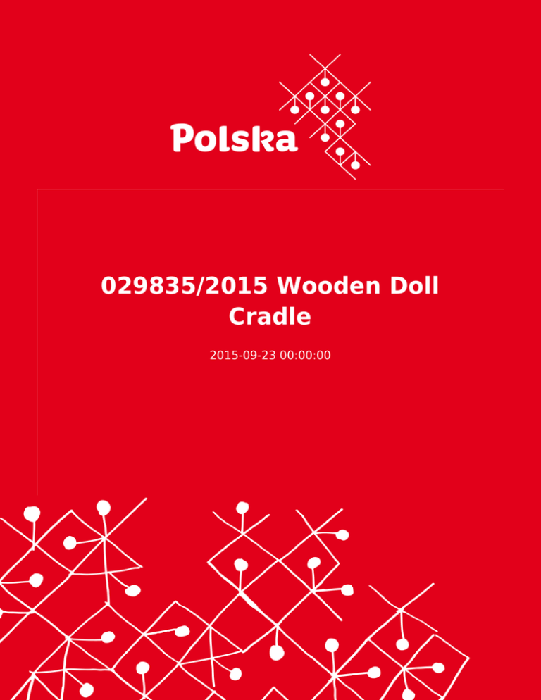 029835/2015 Wooden Doll Cradle 2015-09-23 00:00:00 2 Ця пропозиція не є торговою інформації Adres instytucji/firmy ogłaszającej ofertę Zakład Produkcyjny „ALEKO” Andrzej Habuda 37405 Majdan Golczański (wieś) . Majdan Golczański 24A . Poland Контактна особа Aleksander Habuda [email protected] Тел: 692058271 http://zpaleko.pl/ Опис порядку EN: The wooden cradle for dolls made of birch plywood. For more Information, please visit our website. PL: Drewniana kołyska dla lalek wykonana ze sklejki brzozowej. Więcej informacji na naszej stronie internetowej. Nabywcy z zagranicy ● ● ● ● ● ● ● ● ● Belgia Francja Hiszpania Kanada Niemcy Rosja USA Szwajcaria Szwecja 3 ● ● Wielka Brytania Włochy Вкладення Kolyska_posciel1.jpg Тип пропозиції продаж Строк для отримання тендерів 23.03.2016 Гілки Gry i zabawki Покупець за кордоном НІ 4
