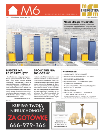 marzec-kwiecień , Nr 2 (108) Marzec-Kwiecień 2017 ISSN1508-9266 Nasze drogie wieczyste Średnio trzykrotnie wyższe opłaty za wieczyste użytkowanie gruntu „zafundował” stołeczny ratusz mieszkańcom spółdzielni od stycznia. Na wykresie najwyższe na danym osiedlu wzrosty cen gruntu. 3 510 zł 3 313 zł 959 zł 809 zł Stępińska 36/46, Sielecka 55,57 św. Bonifacego 73 3 027 zł 3 027 zł 896 zł 803 zł Barcelońska 3,5,7,9 Wartość 1 mkw gruntu do końca 2016 r. 2 593 zł 756 zł Burgaska 6 Bernardyńska 2 Wartość 1 mkw gruntu od 2017 r. BUDŻET NA 2017 PRZYJĘTY SPÓŁDZIELNIA DO OCENY Rada Nadzorcza przyjęła plan gospodarczy spółdzielni na rok 2017. Dokument, który można określić budżet „Energetyki” zakłada m.in. 6 mln zł nadwyżki bilansowej z działalności gospodarczej. Zaplanowane prace remontowe pochłoną 30 mln zł Zmienia się struktura wydatków - wcześniej dominowały sprawy bezpieczeństwa, obecnie więcej wydaje się na poprawę wyglądu budynków. Opłaty średnio w skali spółdzielni wzrosną o 2 proc. Wszystko o planie - str. 6. Badanie satysfakcji mieszkańców oraz zebrania osiedlowe - to dwie sposobności by wystawić spółdzielni ocenę i wyrazić swoje zdanie i oczekiwania. Wylosowani mieszkańcy dostaną do skrzynek listowych ankiety na temat jakości usług świadczonych przez spółdzielnię. Jeśli znajdziemy w skrzynce formularz, warto poświęcić kwadrans na wypełnienie. Zaś w kwietniu odbędą się zebrania osiedlowe, gdzie swoje zdanie można wyrazić i w dyskusji i w głosowaniach. Czytaj strony 9 i 11. W NUMERZE: ✦ LICYTACJA TO OSTATECZNOŚĆ ✦ RADA NADZORCZA SPRAWDZA MAJĄTEK ✦ DEWELOPER NA EGEJSKIEJ ✦ BĘDĄ BUDOWAĆ CZERNIAKOWSKĄ-BIS, WYBRANO WYKONAWCĘ ✦ W CYKLU ROZMÓW Z PRZEWODNICZĄCYMI RAD OSIEDLA - SADYBA ✦ Z ŻYCIA OSIEDLI ✦ Z POZIOMU KRAWĘŻNIKA - H.KOWALIK O SENIORACH NA STEGNACH ✦ KORZENIE MOKOTOWA: KOLEJ WILANOWSKA Reklama 1 nr 2/2017 (108) NIE ZMARNOWAĆ SZANSY* Od poprzedniego V Kongresu Spółdzielczości minęło cztery lata, w ciągu których w sektorze spółdzielczości niewiele się zmieniło. Wprawdzie zablokowano niekorzystne zmiany w ustawie o spółdzielczości, ale nadal pozostaje ona na marginesie zainteresowania rządzących. Obecne władze deklarują potrzebę budowy wspólnoty społecznej, a zatem tego, co przyświeca idei spółdzielczości. To dobry znak i perspektywa, że spółdzielczość znów wróci do łask. Ale czy spółdzielczość tę szansę wykorzysta? Zdaniem Jerzego Jankowskiego, przewodniczącego Zgromadzenia Ogólnego Krajowej Rady Spółdzielczej w tzw. Planie Morawieckiego miejsce dla spółdzielczości jest, choć głośno o tym się nie mówi. Trudno bowiem wyobrazić sobie odrodzenie kapitału polskiego bez udziału banków spółdzielczych, czy budowę mieszkań lokatorskich bez udziału spółdzielni mieszkaniowych. - Musimy sami znaleźć miejsce w tym programie przedstawiając rządowi konkretną ofertę, jako wkład spółdzielczy do rządowego programu rozwoju gospodarczego i to powinno być jednym z pierwszoplanowych tematów obrad VI Kongresu Spółdzielczości - powiedział otwierający obrady przewodniczący Jankowski. Podczas obrad wskazywano, że 2017 rok może być przełomowy dla spółdzielczości mieszkaniowej, pod warunkiem stworzenia silnego lobby spółdzielczego i promocji ruchu spółdzielczego. Są to zadania określone w statucie KRS i to ona, jako reprezentant spółdzielni wobec władz, powinna zintensyfikować działania w tym zakresie. Trzeba przekonać rządzących, że spółdzielczość powinna być traktowana na równi z innymi sektorami gospodarki, mieć równy dostęp do programów i funduszy unijnych. Władze KRS powinny działać bardziej zdecydowanie, atakować ministrów i parlamentarzystów i nie prosić, a żądać rozwiązywania problemów. Spółdzielcy mają takie same prawa jak wszyscy inni obywatele kraju i nie mogą być traktowani inaczej. Władze interesują się spółdzielczością wtedy kiedy jest im potrzebna. W okresie komercjalizacji, przez ostatnie 26 lat uchwalane i nowelizo- wane przez Sejm ustawy, zamiast rozwijać sektor spółdzielczy, pogrążały go w chaosie. Dotyczy to szczególnie spółdzielczości mieszkaniowej. Wprowadzane zmiany miały jeden wyraźny cel - jej likwidację. Szczególnie niekorzystne dla spółdzielczości mieszkaniowej było ostatnie 8 lat rządów PO, kiedy to w parlamencie działało niezwykle silne lobby antyspółdzielcze. Zastanawiający jest fakt, że w tym czasie spółdzielczość mieszkaniowa, która przetrwała niejeden kryzys gospodarczy, zachowała swoją tożsamość w czasie okupacji hitlerowskiej, nie potrafiła się zorganizować i nie stworzyła własnej, silnej reprezentacji, która by ją promowała i popierała. Najwyższy czas to zmienić, a grunt do tych zmian jest podatny. Czy tę szansę spółdzielczość wykorzysta? Przewodniczący Jerzy Jankowski zaprosił wszystkich delegatów do złożenia podpisów pod listem do Prezydenta RP Andrzeja Dudy, do premier Beaty Szydło oraz do parlamentarzystów w sprawie uwzględnienia spółdzielni w narodowym programie rozwoju gospodarczego. (...) Okazji do promowania polskiej spółdzielczości jest wiele i trzeba je maksymalnie wykorzystać dla dobra wielomilionowej rzeszy polskich spółdzielców. *Tekst pochodzi z gazety „Kurier - Informator spółdzielni i wspólnot mieszkaniowych”, www.redakcja-kow.pl Więcej atencji dla naszych problemów! Delegaci „Energetyki” na zjazd podnosili sprawę braku uregulowania stanu prawnego gruntów. Problem ten był poruszany przez wszystkie spółdzielnie mieszkaniowe z terenu Warszawy, ale nie znajduje swojego odzwierciedlenia we wnioskach pozjazdowych. Niezbędnym jest nagłaśniane naszego problemu oraz pilne wprowadzenie zmian w uregulowaniach prawnych, które rozwiązałyby ten problem, jak również sprawę nierównego traktowania członków spółdzi