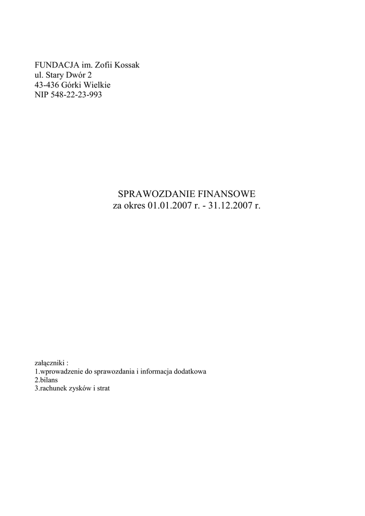 SPRAWOZDANIE FINANSOWE za okres 01.01.2007 r.