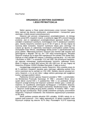ORGANIZACJA SEKTORA GAZOWEGO I JEGO PRYWATYZACJA