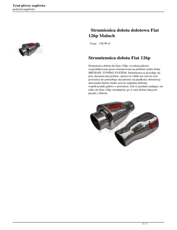 Tytuł główny nagłówka podtytuł nagłówka Strumienica dolotu dolotowa Fiat 126p Maluch Cena: 126.99 zł Strumiennica dolotu Fiat 126p Strumienica dolotu do fiata 126p, wysokiej jakości wyprodukowana przez renomowaną na polskim rynku firmę MICHAEL TUNING SYSTEM. Strumienica ta przydaje się przy dynamicznej jeździe, sprawa iż silnik ma zawsze tyle powietrza ile potrzebuje niezależnie od prędkości obrotowej mieszanka będzie miała zawsze najlepiej dobrany współczynnik paliwo + powietrze. Jest to produkt nadający sie tylko do fiata 126p, montujemy go w rurę dolotu idącą do puszki z filtrem. 1/1 Powered by TCPDF (www.tcpdf.org)