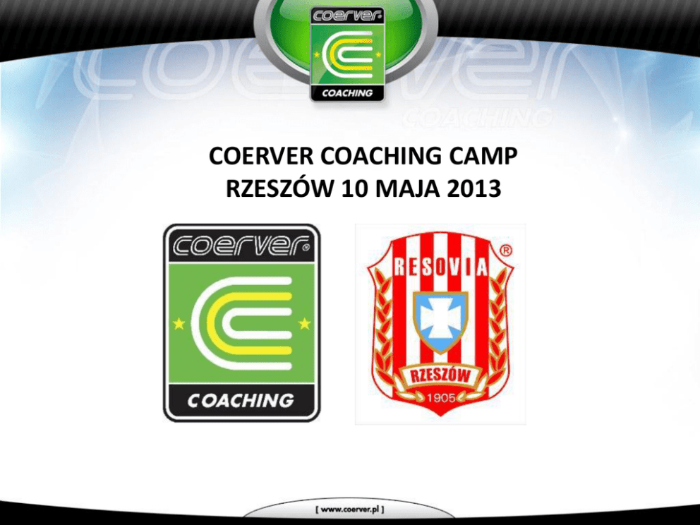 COERVER COACHING CAMP RZESZÓW 10 MAJA 2013 INFORMACJE OGÓLNE Data: 10 maja 2013 godzina 16.30 – 19.30 Miejsce: Rzeszów ul. Wyspiańskiego 22, sztuczne boisko Resovii Organizatorzy: Piłkarska Akademia Coerver Coaching, Szkoła Mistrzostwa Sportowego Resovia Ilość uczestników: 90 – 120 Przedział wiekowy: roczniki od 2000 do 2006 I grupa:2006 – 2005 II grupa: 2004 – 2003 III grupa: 2002 – 2000 Partnerzy: Miasto Rzeszów, Uniwersytet Rzeszowski - Wydział Wychowania Fizycznego, Gazeta Wyborcza , Radio Wawa Rzeszów, Handlopex Udział w Campie jest bezpłatny, decyduje kolejność zgłoszeń Informacje i zgłoszenia: tel. 797 001 305, e-mail: [email protected] ZAKRES MERYTORYCZNY • Program „STARMOVES – zagraj jak gwiazda” Naucz się zagrań, którymi charakteryzują się najlepsi zawodnicy na świecie Arjen Robben, Cristiano Ronaldo czy Messi •Coerver Skills Zone -Passing – test podań z wykorzystaniem platformy SmartSpeed -Moves – wahadłowe prowadzenie piłki z pomiarem czasu -Shooting – test celności strzału W każdej kategorii przyznawane są dyplomy i nagrody rzeczowe dla najlepszych 3 zawodników (w trzech kategoriach wiekowych) WEJDŹ Z NAMI W PROFESJONALNY ŚWIAT FUTBOLU PROGRAM •16.10 – 16.30 – Rejestracja uczestników •16.30 – Oficjalne rozpoczęcie •16.30 – 17.10 – I strefa StarMoves •17.15 – 17.55 – II strefa StarMoves •18.00 – 18.40 – III Coerver Skills Zone – testy umiejętności •18.50 – 19.20 – Games •19.30 Oficjalne zakończenie Mariusz Paszkowski Koordynator ds. szkolenia Coerver Coaching Polska Tel. 515 022 206 E-mail: [email protected]